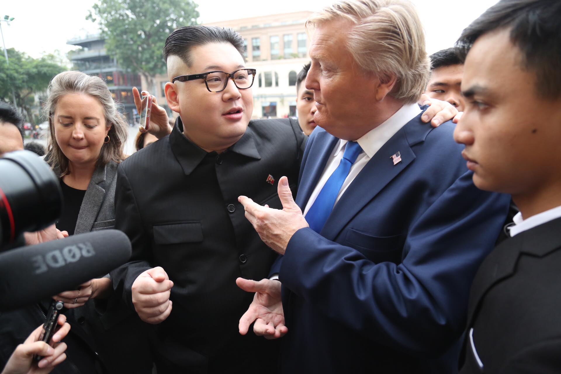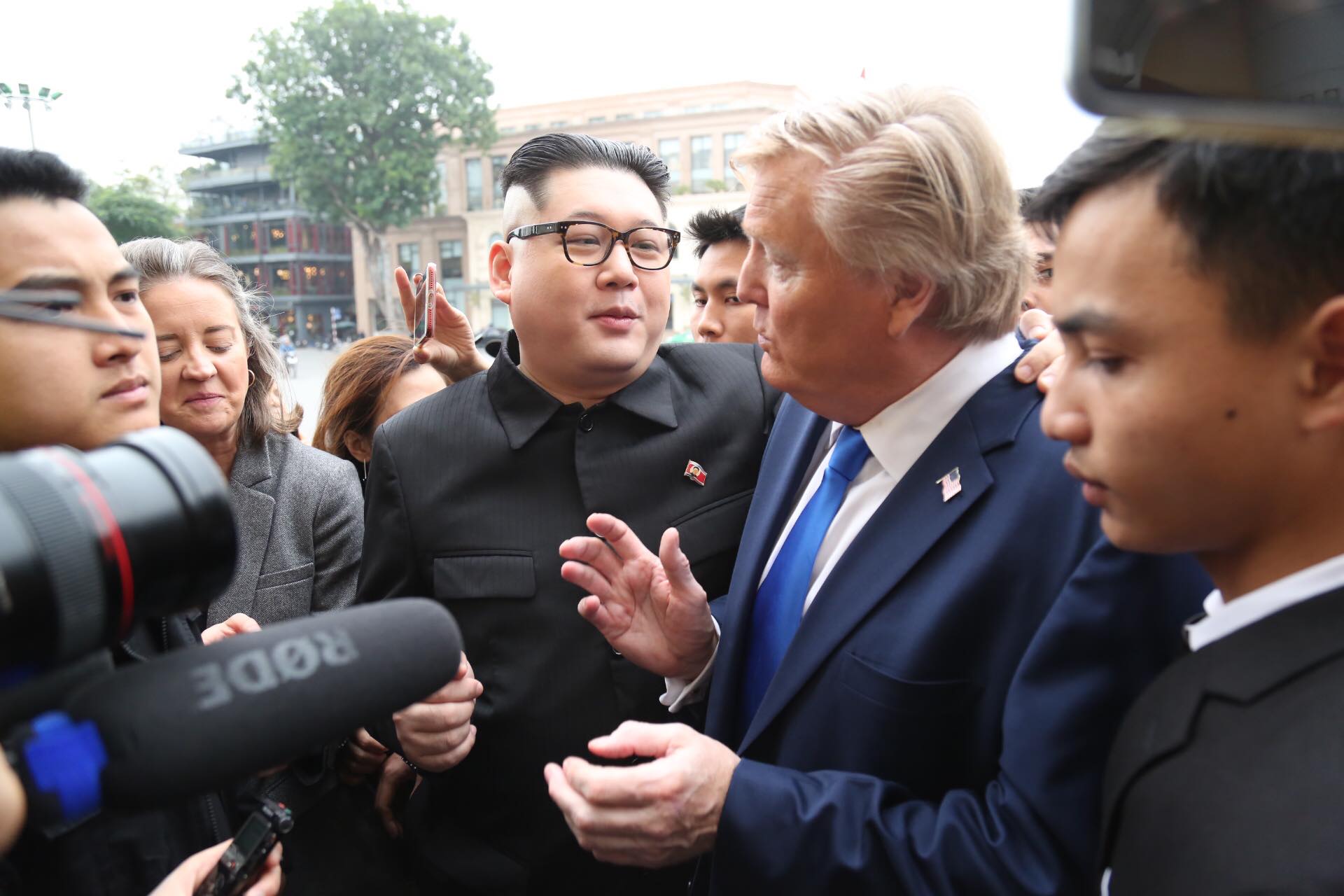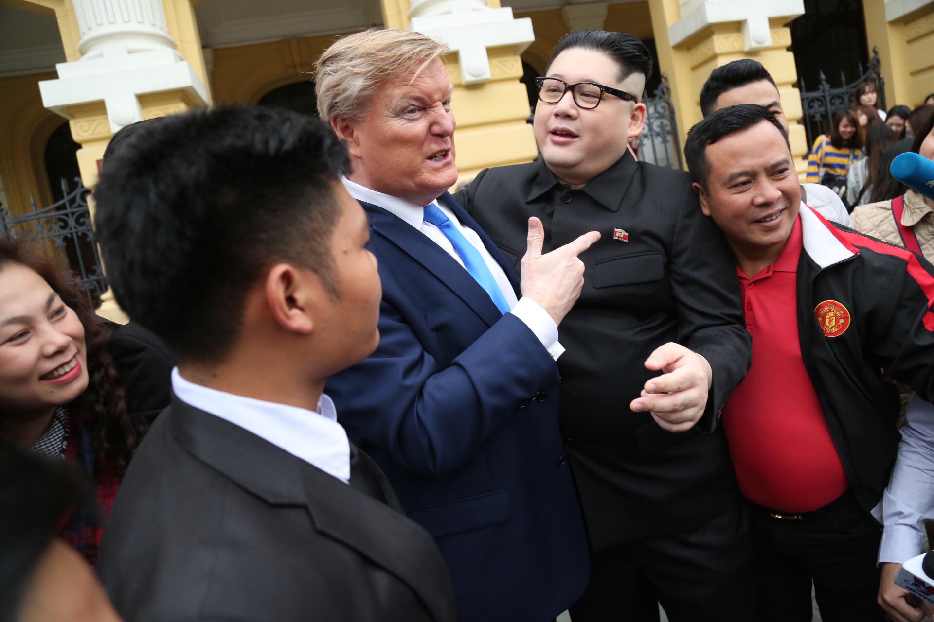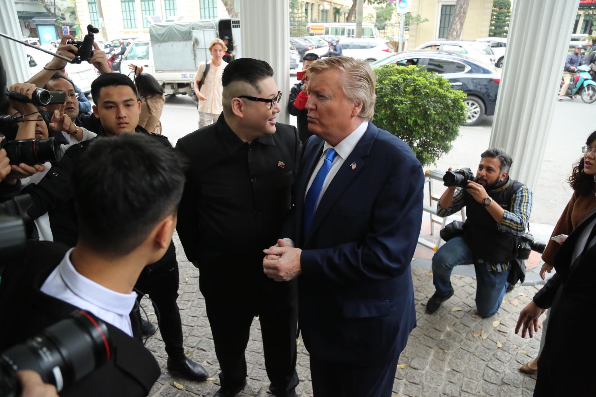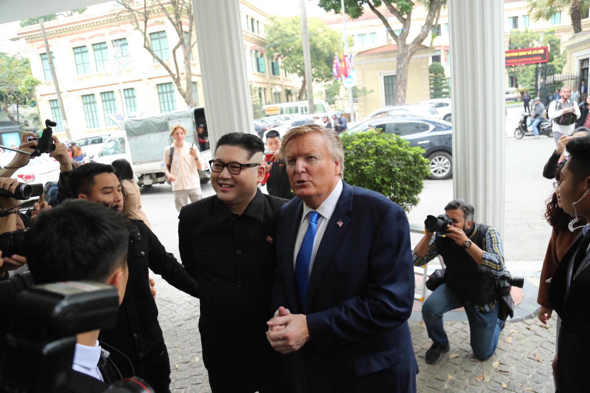 Chiều 22/2, bản sao của hai nhà lãnh đạo và Donald Trump và Kim Jong-un đã bất ngờ xuất hiện tại một khách sạn nổi tiếng ở Hà Nội, ngay trước thềm cuộc gặp thượng đỉnh Mỹ-Triều lần thứ 2 dự kiến diễn ra vào ngày 27-28/2 tới.