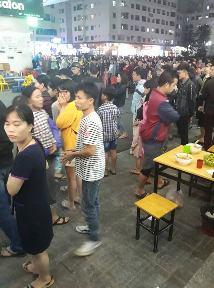 Hiện vụ việc đang được công an điều tra làm rõ. Khu vực sảnh chung cư hàng trăm người dân tụ tập theo dõi lực lượng chức năng khám nghiệm.