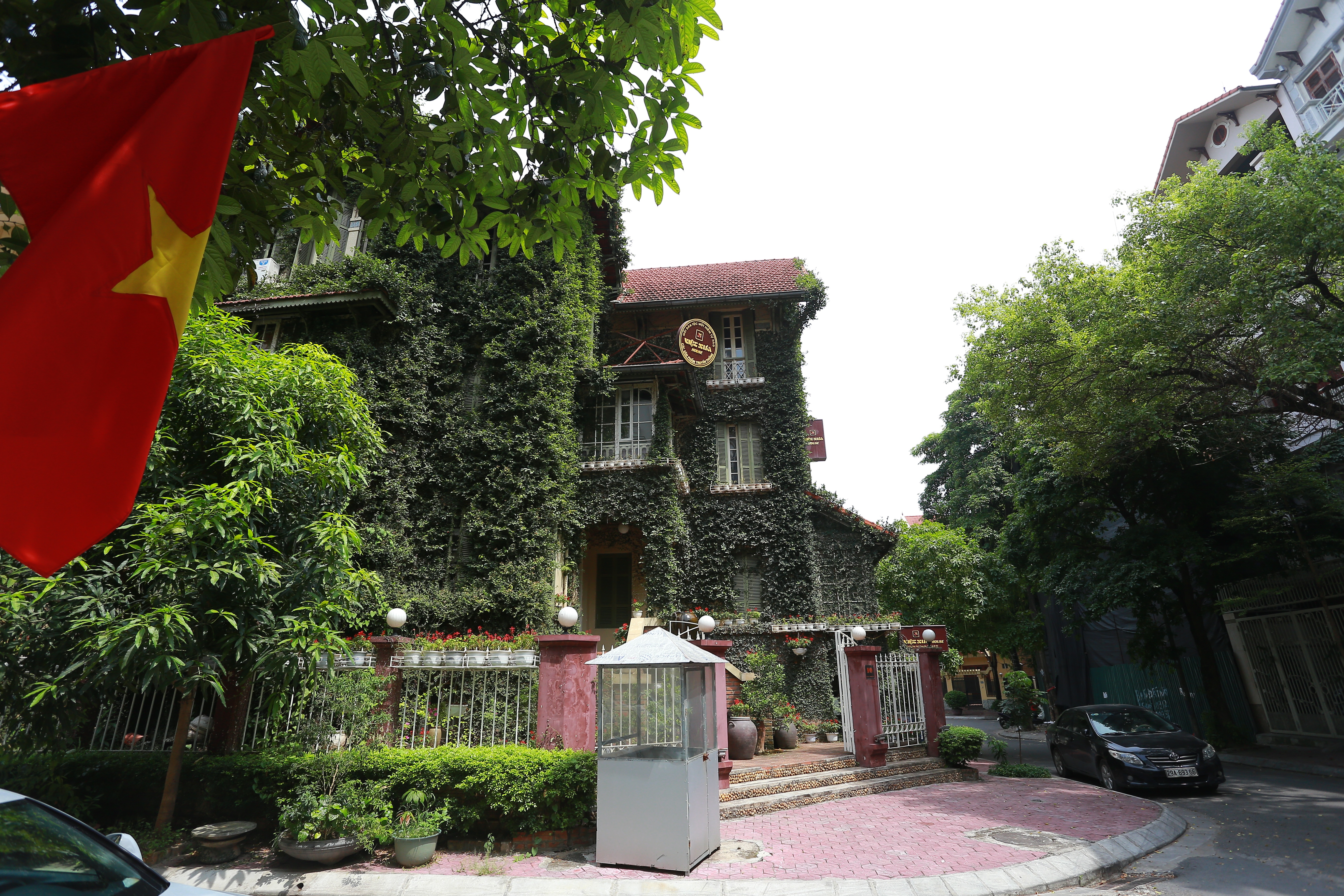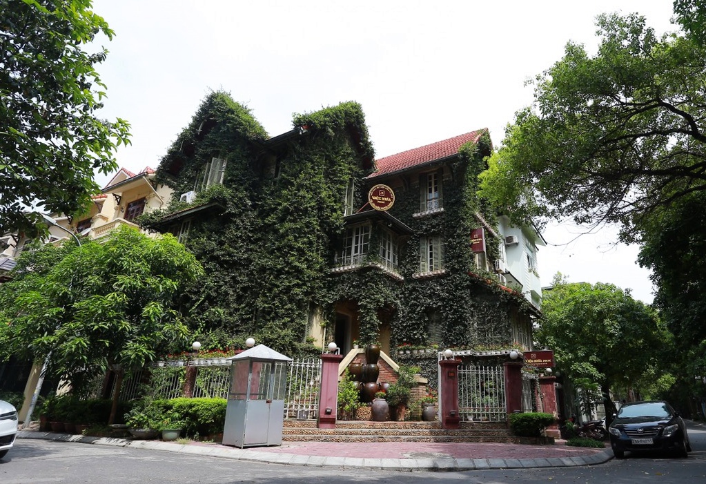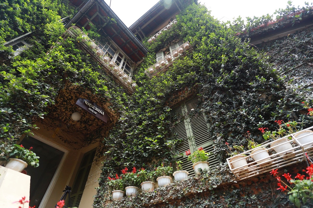 Căn biệt thự 3 tầng phủ kín cây xanh nằm trong khu dân cư Trung Yên (quận Cầu Giấy, Hà Nội) trở nên vô cùng nổi bật khi quanh năm phủ kín cây leo chằng chịt, khác biệt.