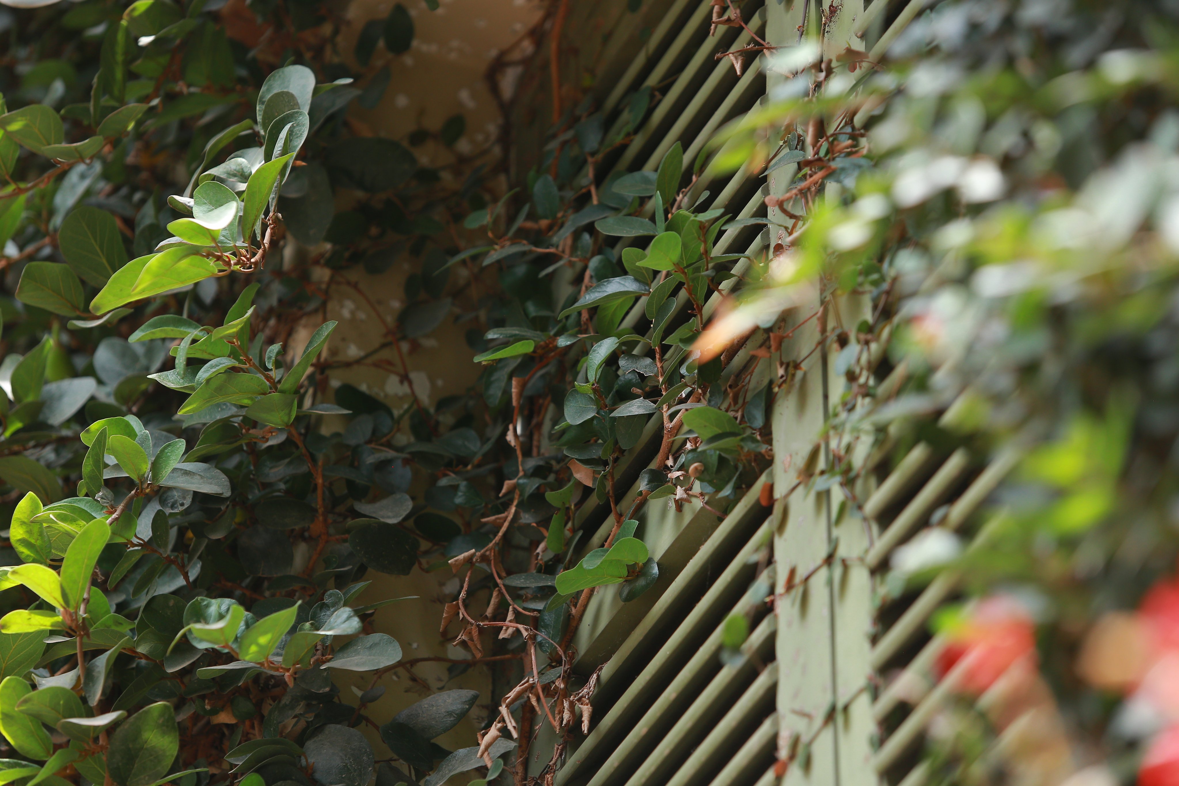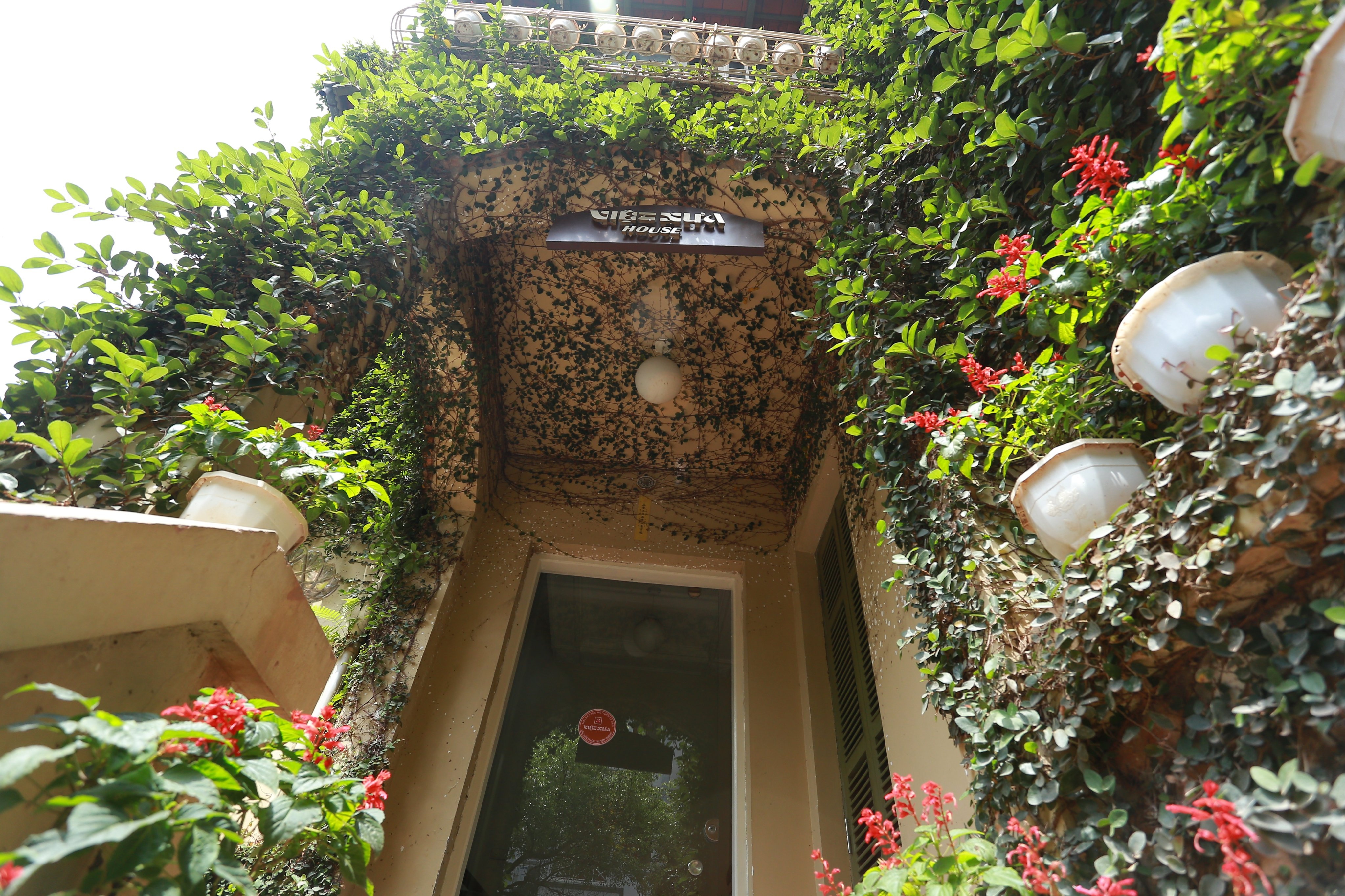 Hệ thống cây dây leo bám chắc vào tường nhà.