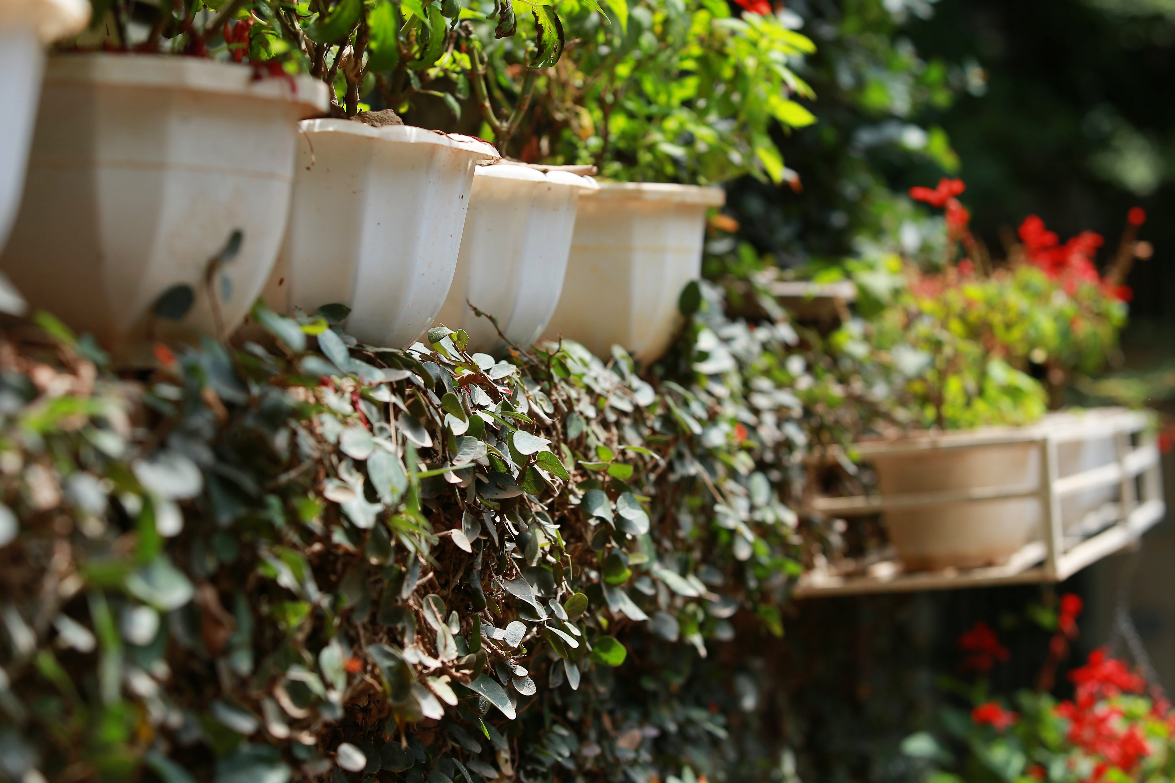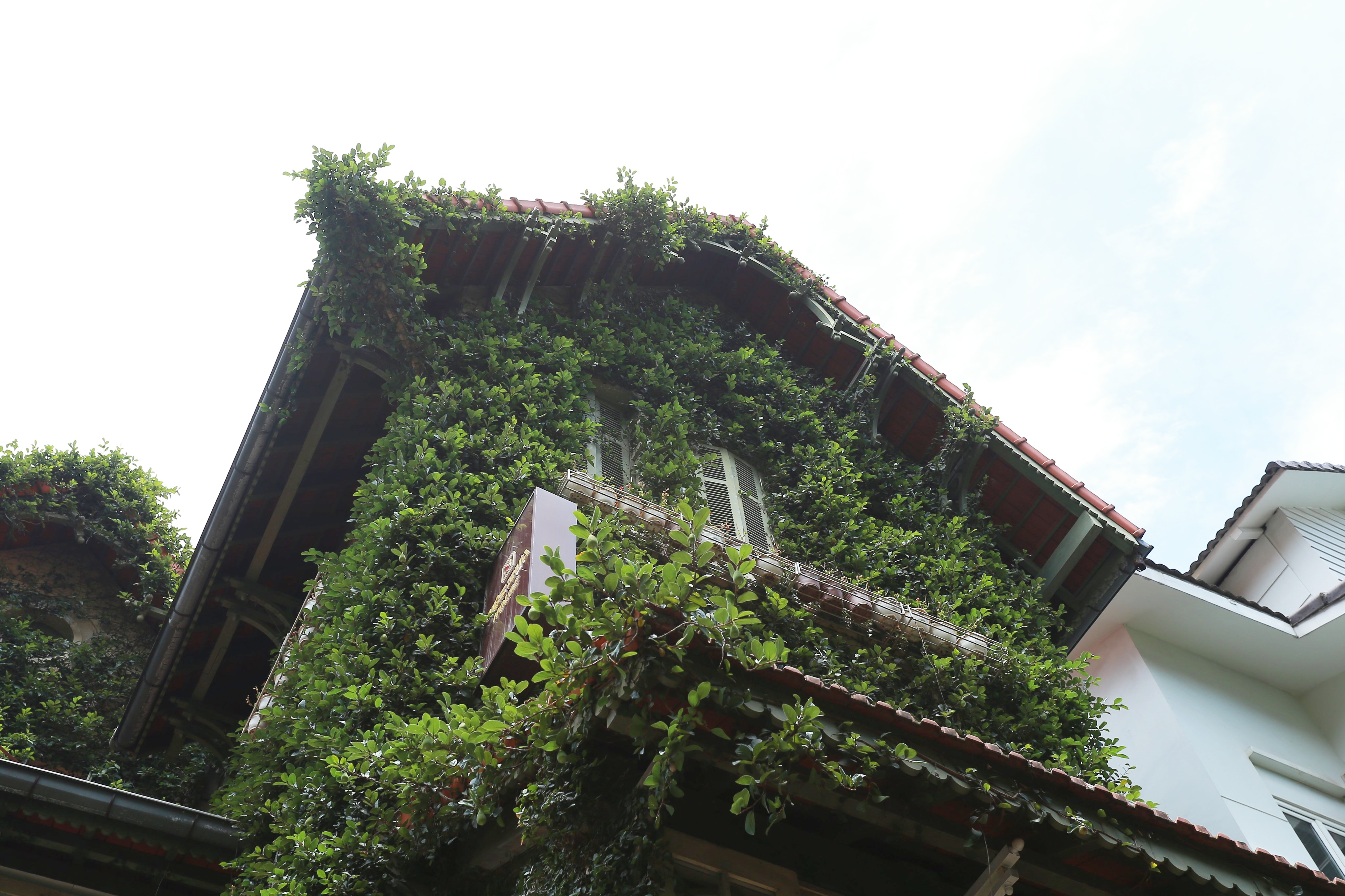 Nhiều lớp cây được trồng tại các tầng. Dù có tác dụng làm mát nhà, tạo ra điểm nhấn kiến trúc độc đáo song nhược điểm của việc trồng cây thân leo là rễ cây phát triển rất nhanh ở các khe nứt của nhà, khiến tường dễ bong tróc sơn. Thậm chí về lâu dài có thể dẫn đến hỏng tường. Để đảm bảo sự an toàn cho gia đình, gia chủ thường xuyên tỉa cây, kiểm tra và nhanh chóng khắc phục các sự cố.