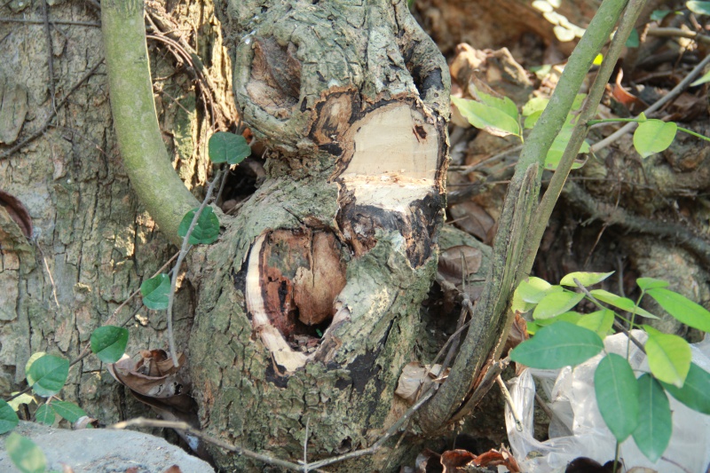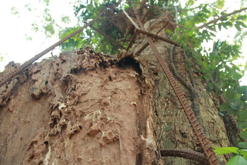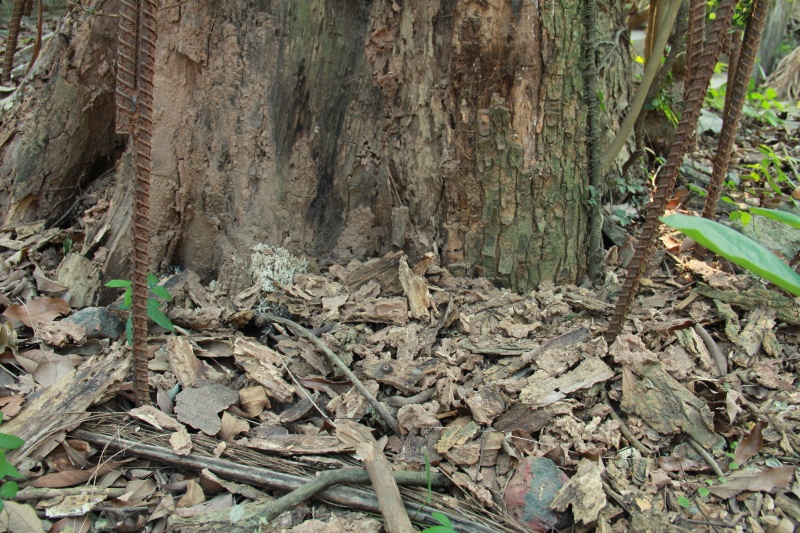Thân cây sưa đang bị mối mọt tấn công mạnh.