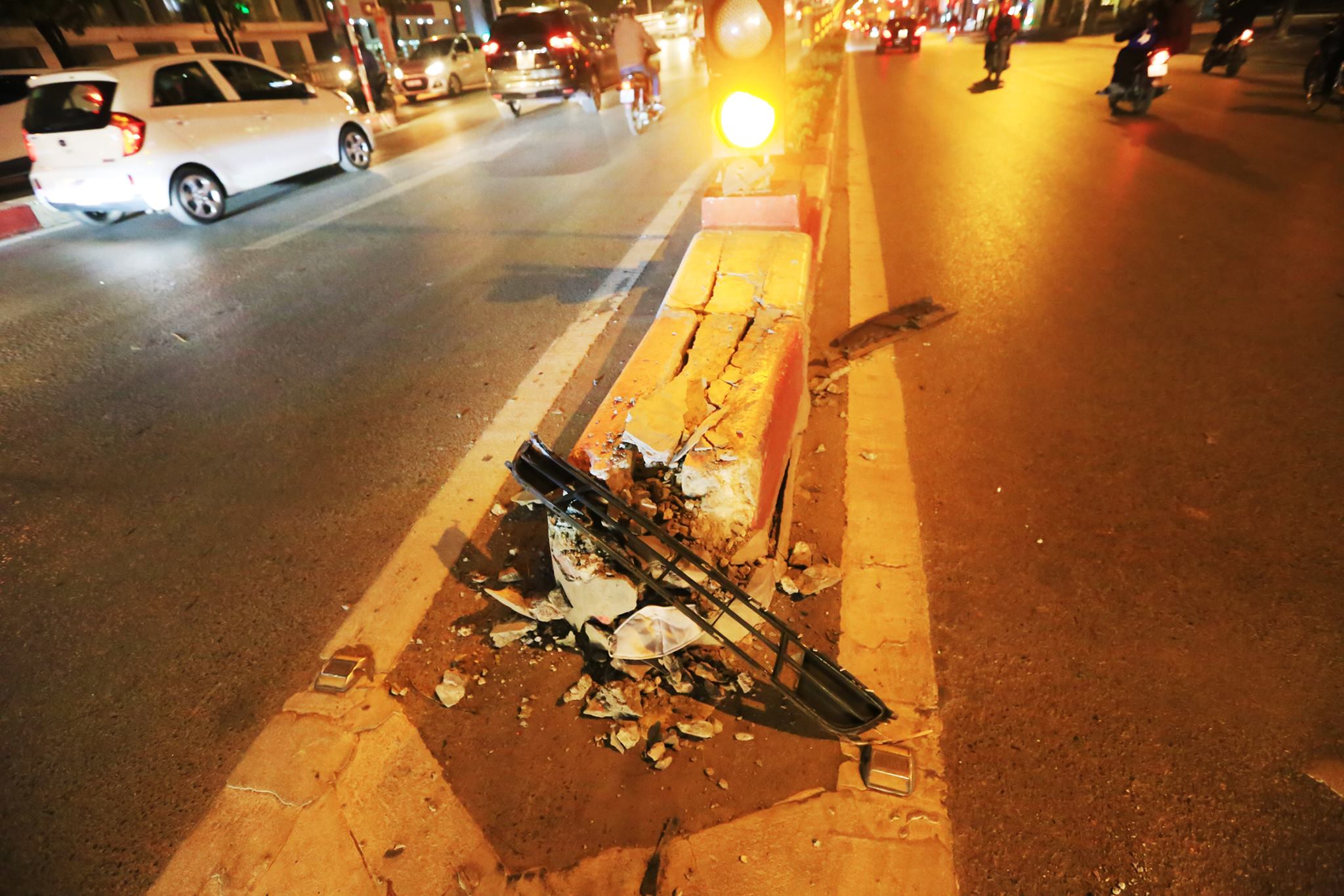 Theo đó, sau cú va chạm mạnh vào thành cầu vượt Trần Duy Hưng - Nguyễn Chí Thanh tài xế bị choáng nhưng vẫn lùi xe để tiếp tục di chuyển.