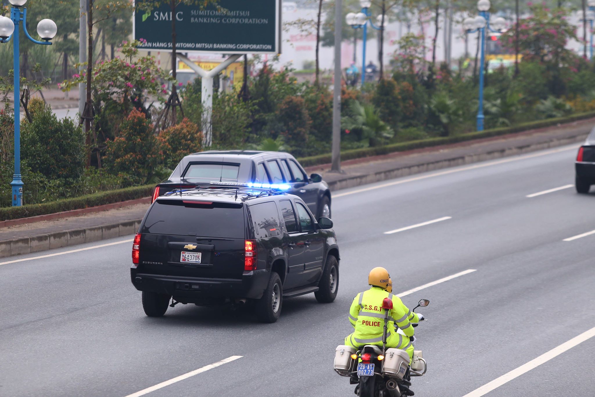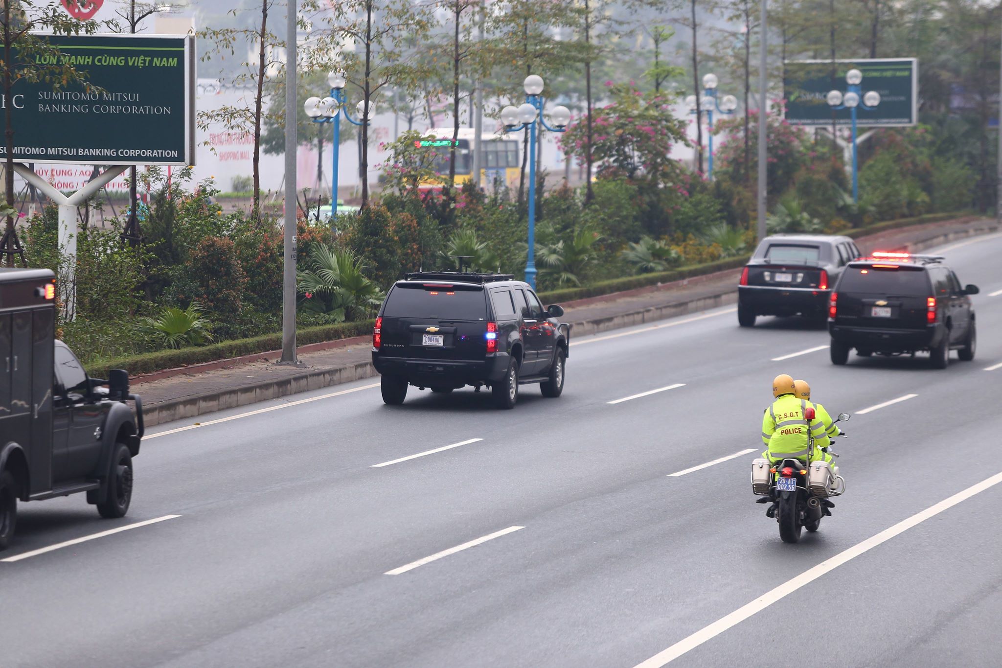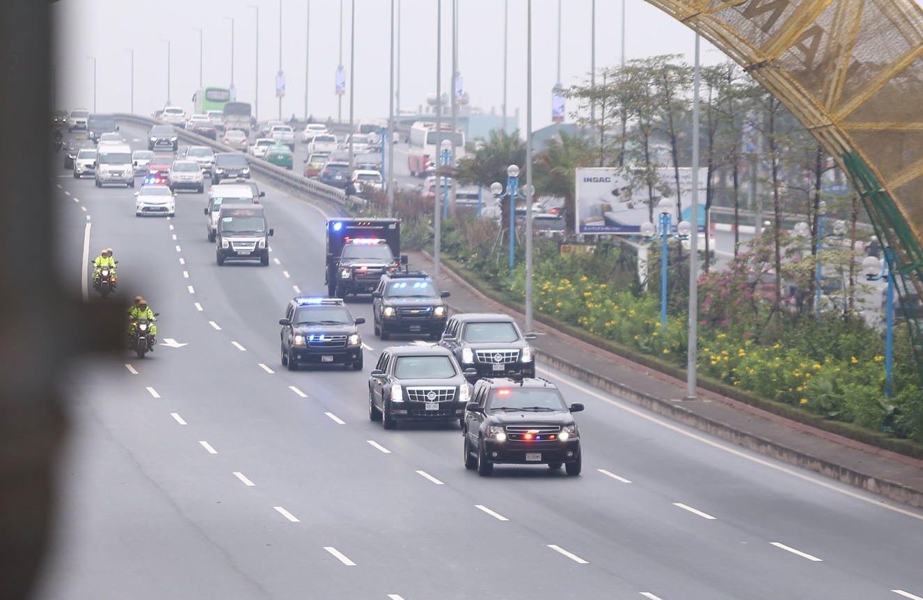 Sáng nay 23/2, thêm chiếc máy bay vận tải khổng lồ nữa của không lực Mỹ đáp xuống sân bay quốc tế Nội Bài với chiếc xe siêu chống đạn có biệt danh “Quái thú”. Dù đã được cấp xe bọc thép thế hệ mới nhất từ tháng 9-2018, Tổng thống Donald Trump vẫn sử dụng xe cũ được chuyển giao từ người tiền nhiệm Barack Obama trong chuyến công du đến Việt Nam lần này. Trong ảnh đoàn xe di chuyển qua cầu Nhật Tân.