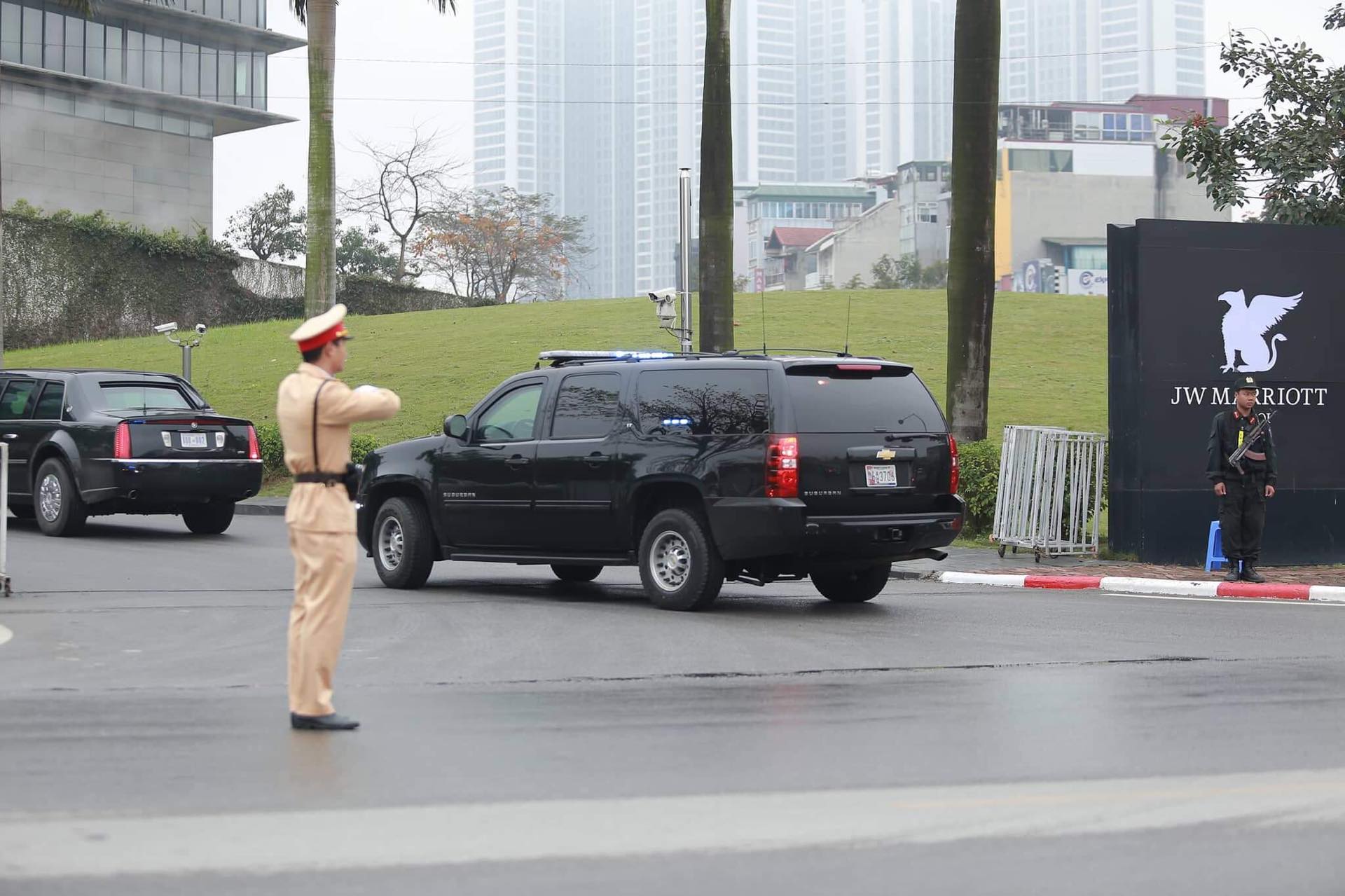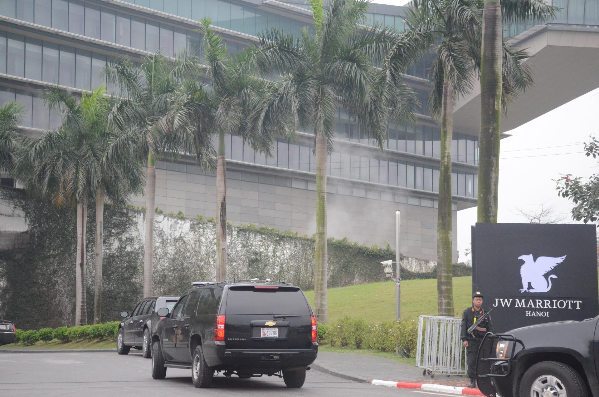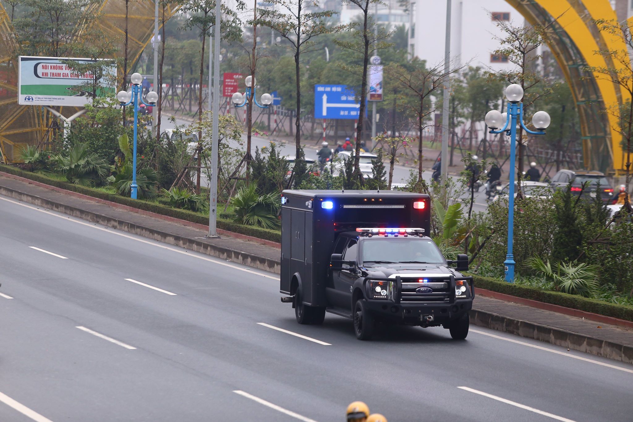 Đoàn xe di chuyển qua nhiều tuyến phố của Thủ đô Hà Nội để đến khách sạn JW Marriott trên đường Đỗ Đức Dục.