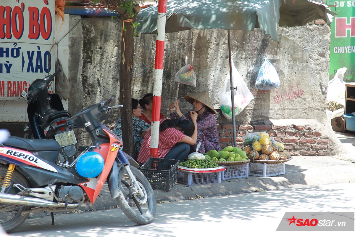 Cô bạn hàng phải túc trực ngoài trời nhưng chỉ có một chiếc ô nhỏ để chống nắng.