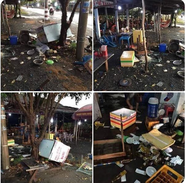 Hình quán hủ tiếu B.C bị nhóm người lạ mặt đến đập phá (Ảnh Tuổi trẻ)