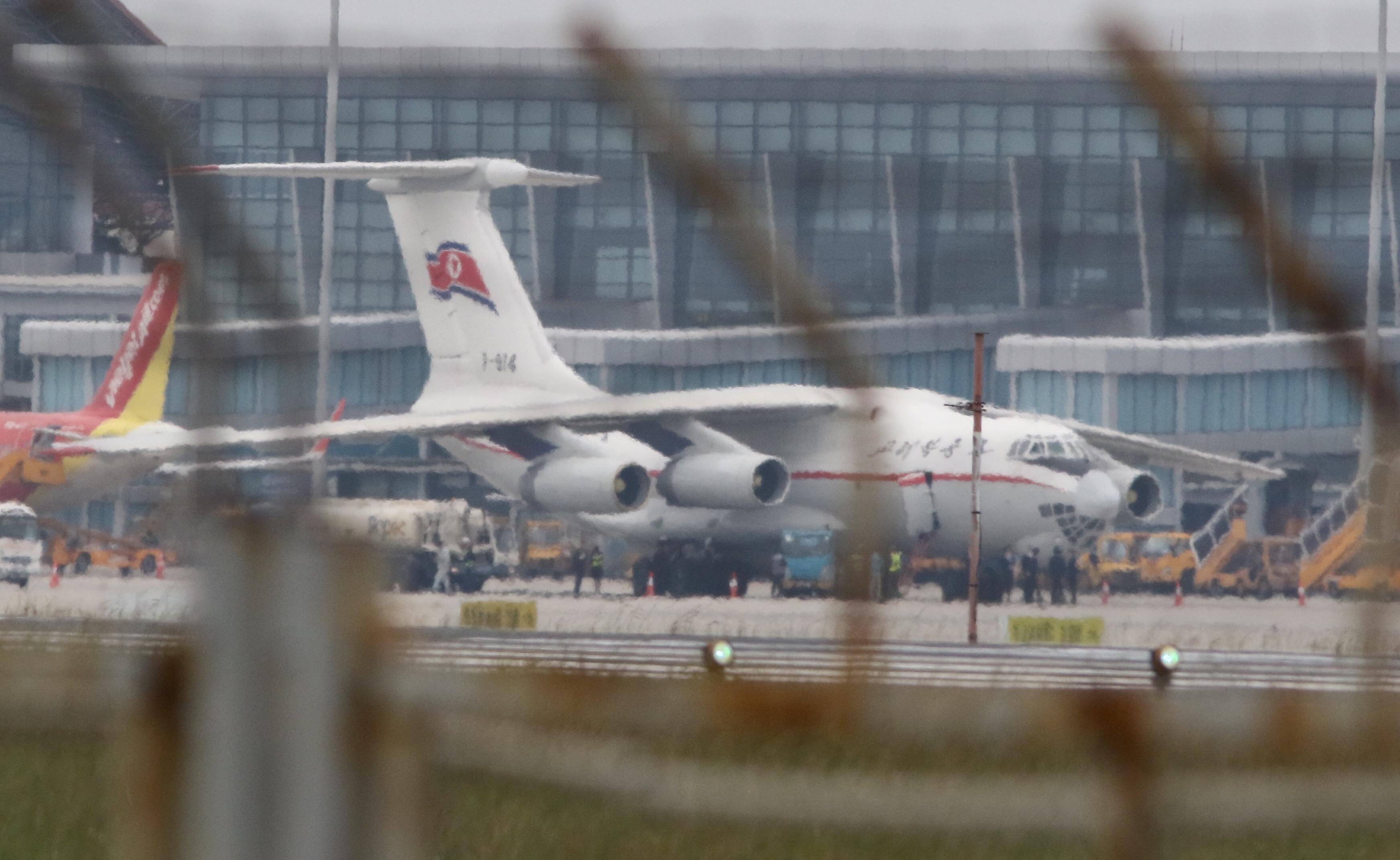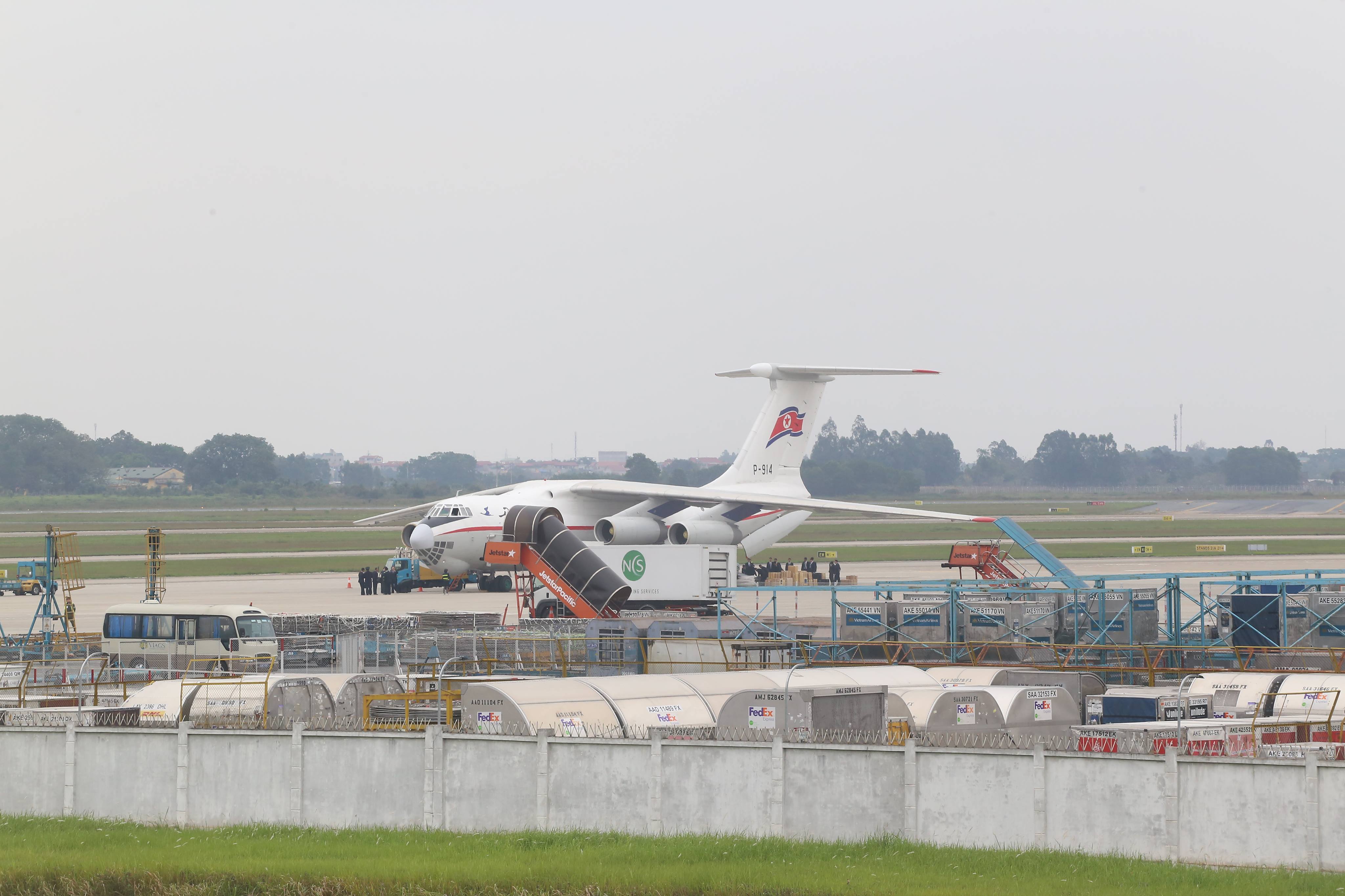Vận tải cơ Ilyushin IL-76 vừa tới Hà Nội chở khoảng 100 nhân viên an ninh của Triều Tiên.