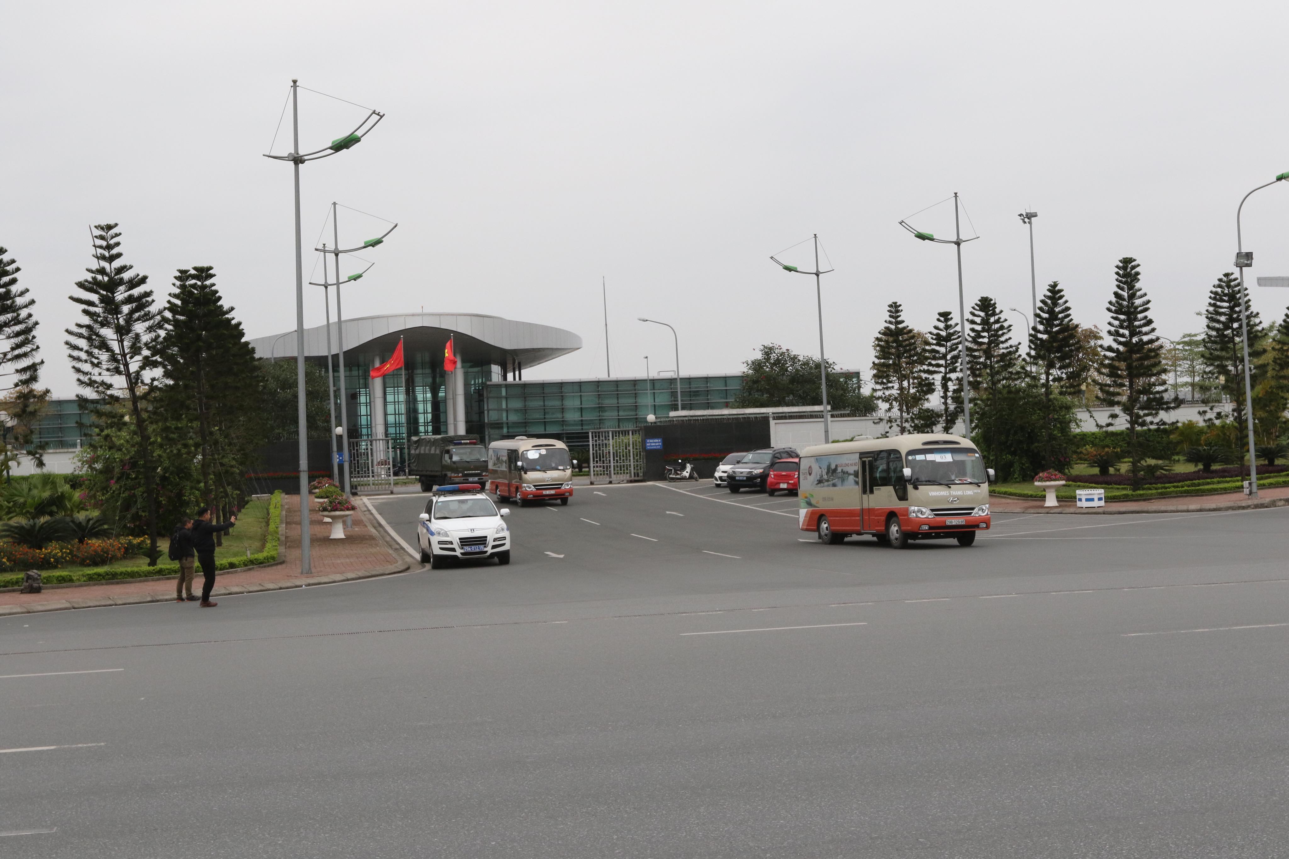 Đoàn xe chở nhân viên an ninh Triều Tiên cùng trang thiết bị, hàng hoá rời nhà ga Vip A, được xe đặc chủng của cảnh sát giao thông dẫn đường.