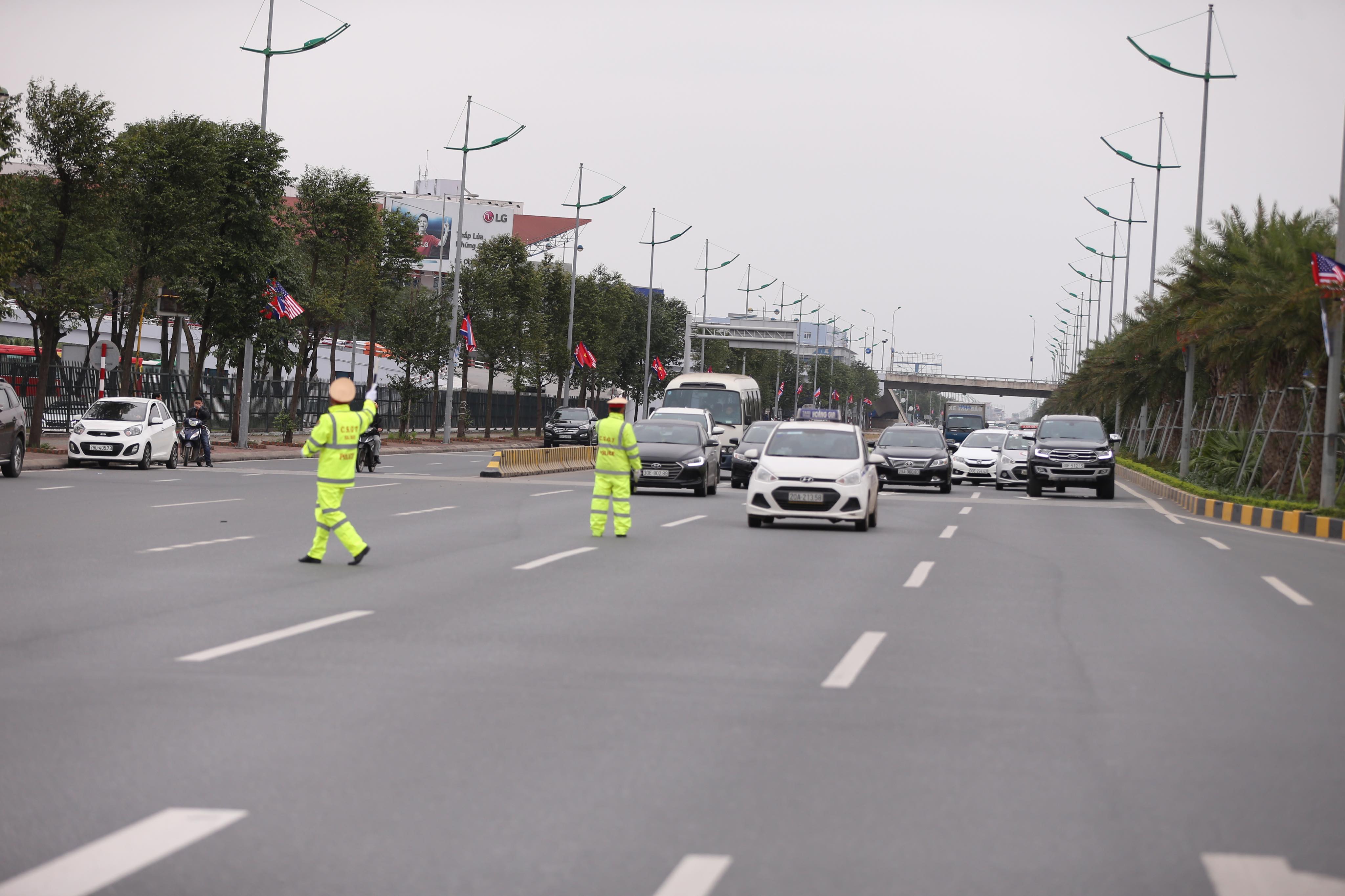 Ở nhiều tuyến đường bố trí lực lượng chức năng, đảm bảo an ninh trật tự.