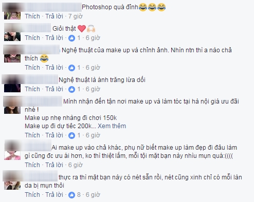Những bình luận tỏ ra khá ngạc nhiên về sức mạnh của make up và công nghệ chỉnh ảnh (Ảnh: Facebook).