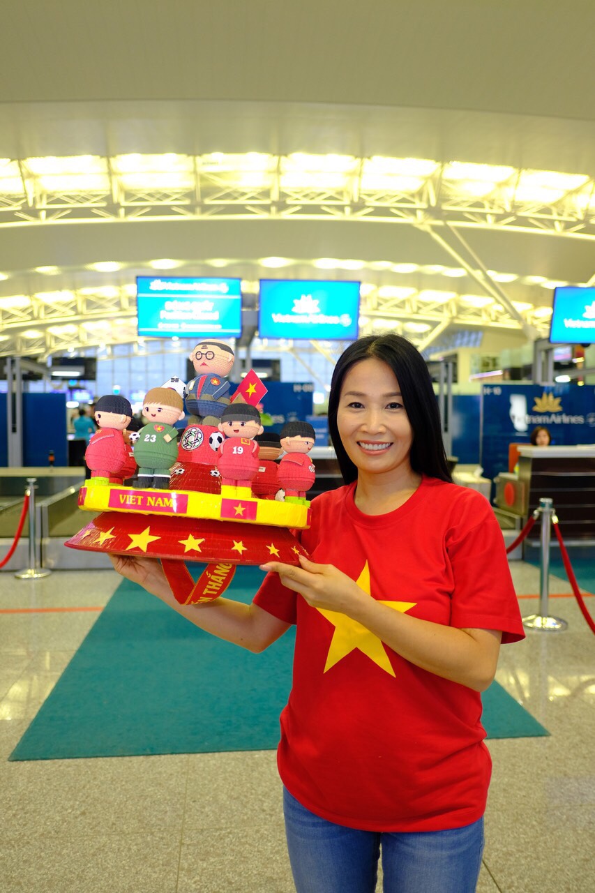 Ngay từ rất sớm nhiều cổ động viên đã có mặt tại sân bay Nội Bài để chuẩn bị cho hành trình vượt hơn 5.400 cây số từ Hà Nội đến Dubai để “tiếp lửa” cho Đội tuyển bóng đá Việt Nam trong trận đấu quyết định tại vòng Tứ kết Asian Cup 2019.