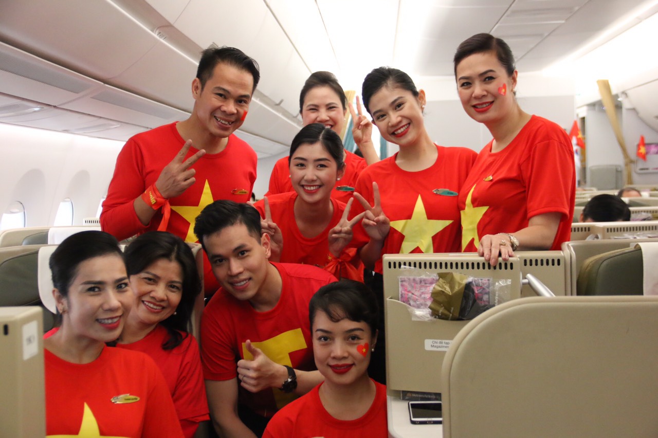 Gần 250 CĐV sẽ vượt hơn 5.400 cây số từ Hà Nội đến Dubai trên chuyến bay thẳng đặc biệt của Vietnam Airlines để tiếp thêm sức mạnh cho đội tuyển Việt Nam.