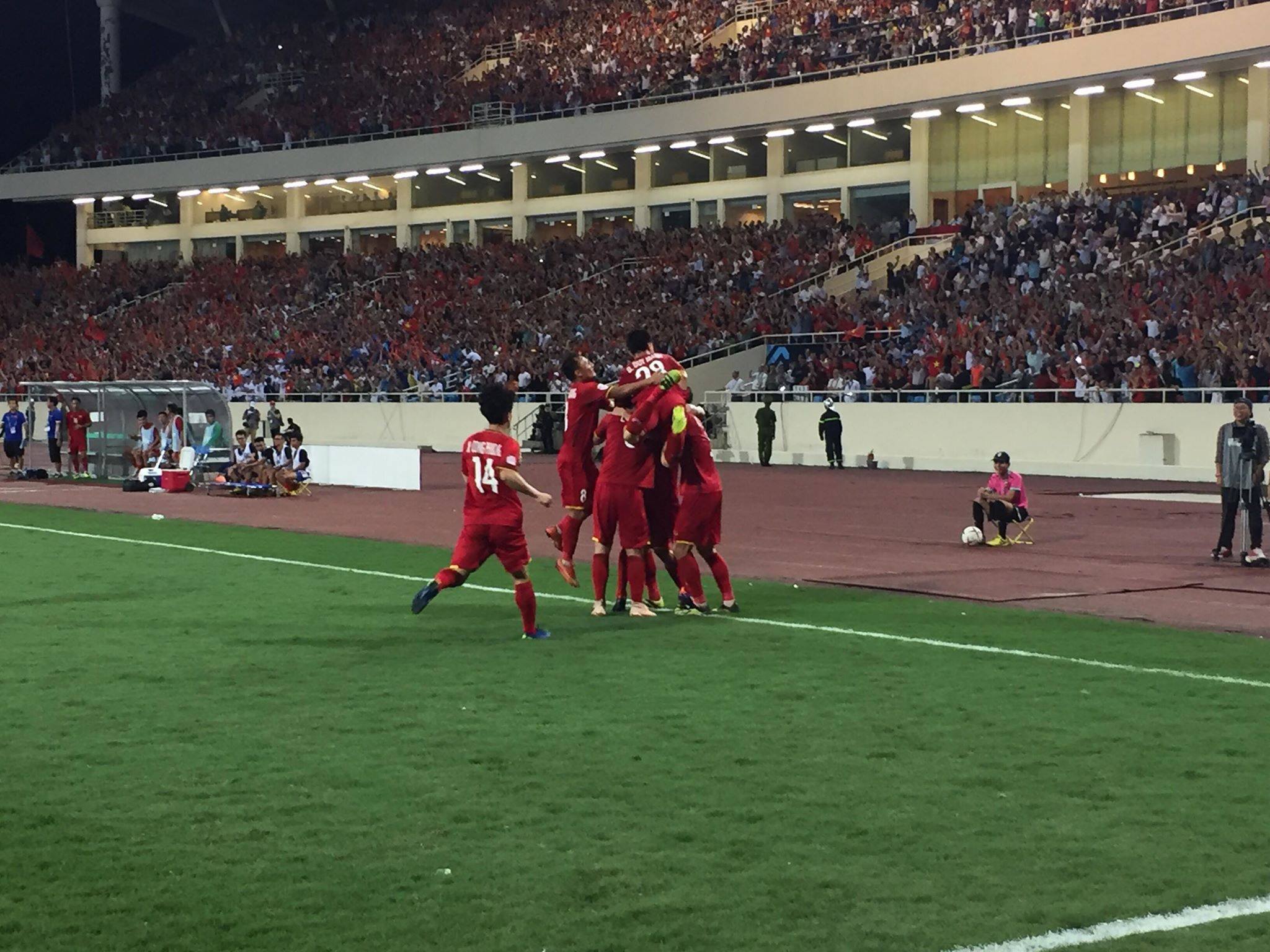 Ngay từ rất sớm, đông đảo cổ động viên cùng cờ đỏ sao vàng, băng rôn đã nhuộm đỏ sân Mỹ Đình. Ngay sau khi kết thúc trận đấu với tỉ số 2-0 nghiêng về đội tuyển Việt Nam, hàng ngàn cổ động viên đã đổ xuống đường ăn mừng chiến thắng.