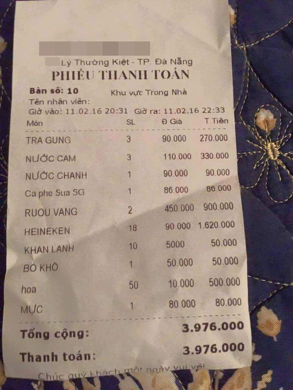 Trước đó, cũng có không ít trường hợp đã từng bị “hét” giá như vậy khi hoá đơn có thể lên đến cả chục triệu một bữa ăn. Điều này cho thấy, câu chuyện bị chặt chém chẳng phải xa lạ đối với bất cứ ai.