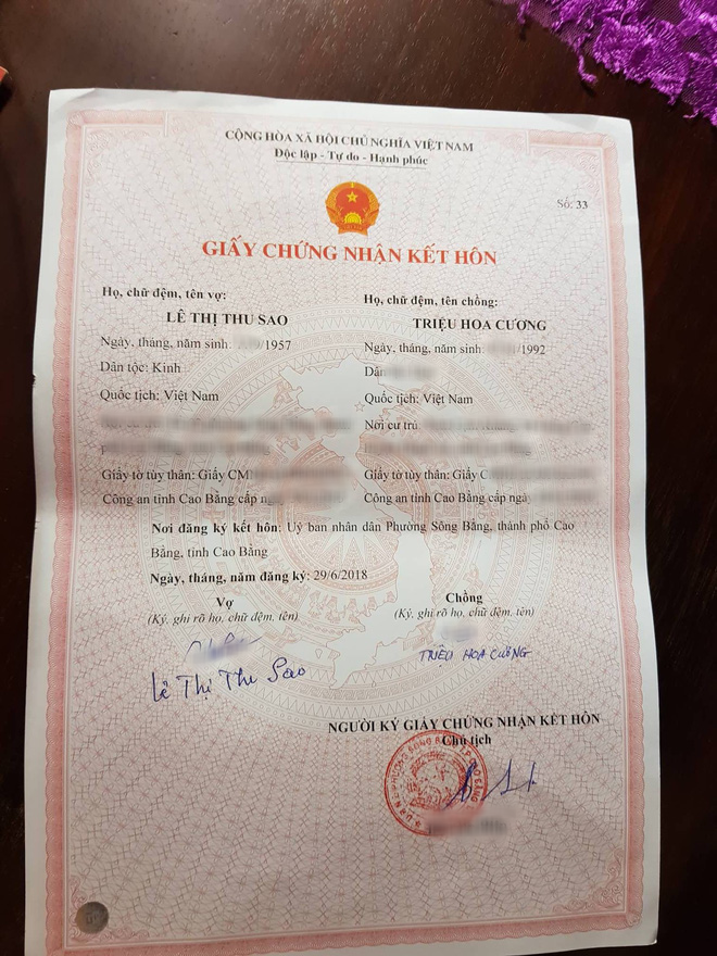 Được biết, anh Cương tình cờ quen bà Lê Thị Thu Sao (SN 1957 ) tại một spa làm đẹp ở Cao Bằng. Vì muốn theo đuổi bà chủ, suốt 2 tháng anh liên tục xuất hiện ở đây. Sau nhiều lần trò chuyện, cả 2 đã chính thức trở thành người yêu của nhau. Mới đây, họ cùng làm đăng ký kết hôn và dự tính tổ chức lễ cưới vào tháng 8 sắp tới.