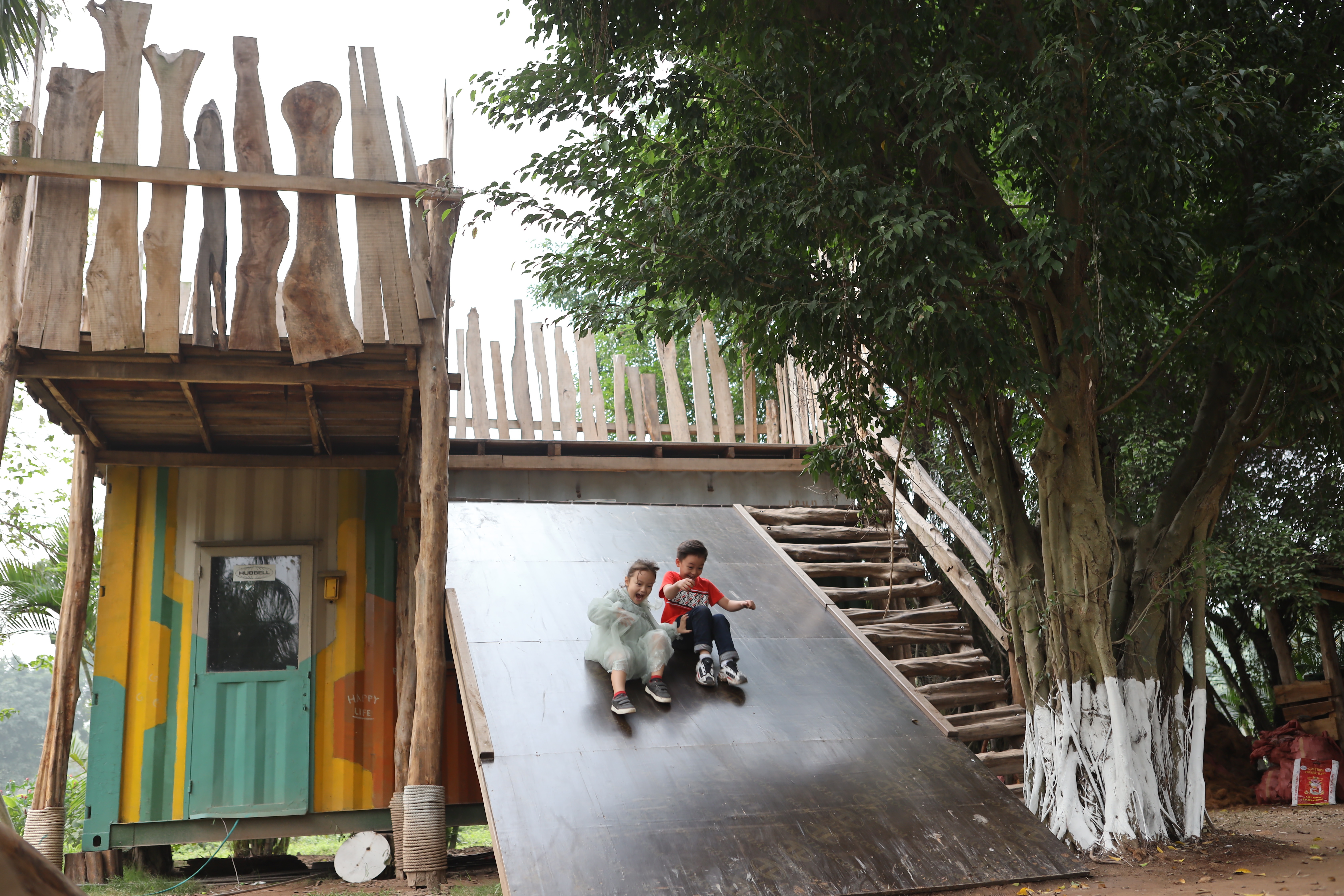 Trẻ nhỏ thích thú trượt.