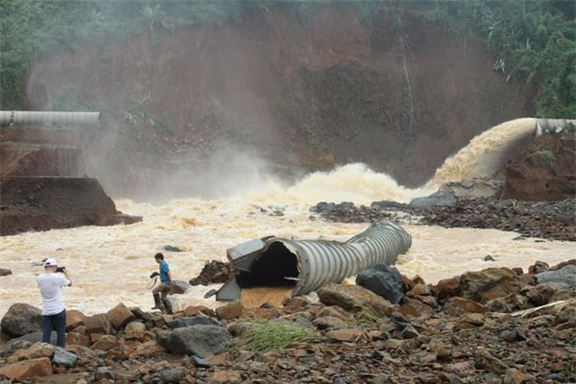 Chiều 10/8, cả 2 van xả bị kẹt tại thủy điện Đắk Kar đã được mở để xả nước. Ảnh: báo Vietnamnet