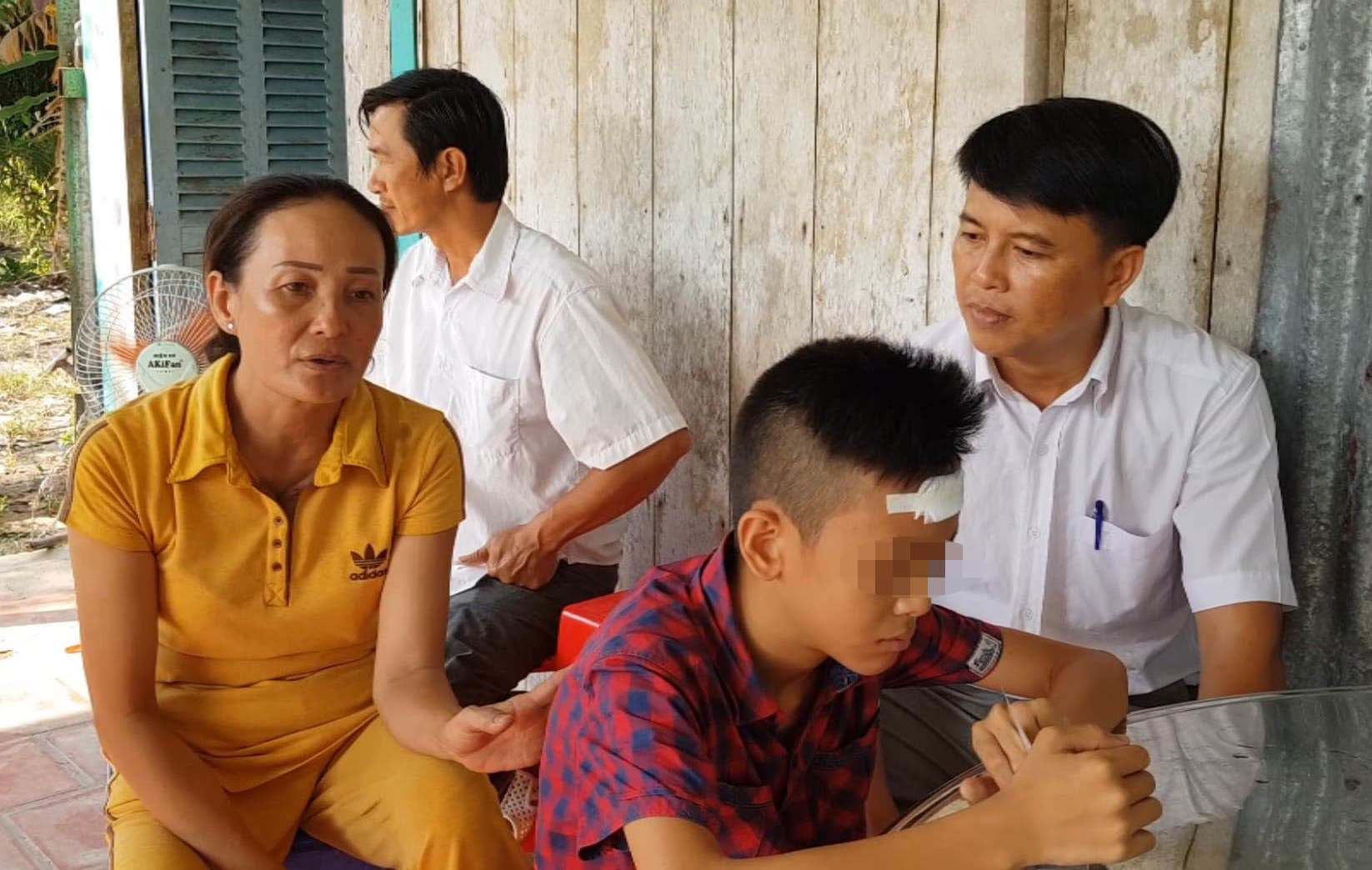 Trao đổi với VTC, bà Đ. - mẹ em A. - cho biết ngày xảy ra sự việc, bà nhận được điện thoại của giáo viên nói con tự té trúng kiếng, chảy máu đầu. Bà đến trường mới biết con bị đánh, trán được băng bó nhưng máu vẫn chảy nhiều. Gia đình lập tức đưa A. đi bệnh viện.