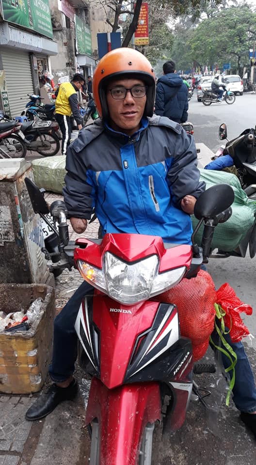 Hình ảnh anh shipper cụt cả hai tay được dân mạng chia sẻ