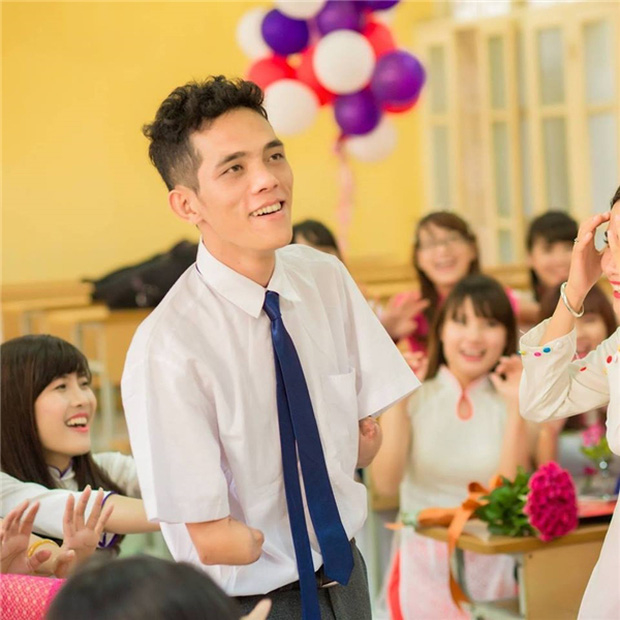 Anh kể lại: “Ngày đó muốn bê bát cơm còn khó huống chi việc viết bài, giở sách. Nhiều khi nhìn bạn bè mình tủi thân khóc suốt. Nhưng nỗi niềm mong mỏi được ra ngoài kia thôi thúc mình phải cố gắng vì mình biết còn nhiều người khó khăn hơn mình!”.