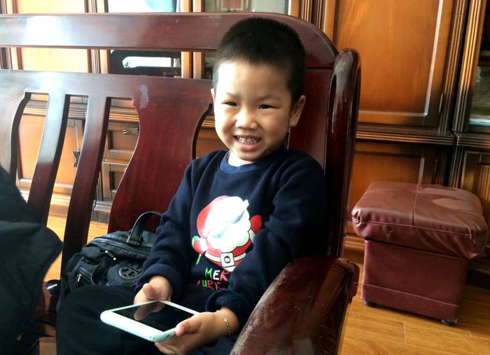 Hình ảnh bé trai kháu khỉnh đứng ở Phủ Tây Hồ.