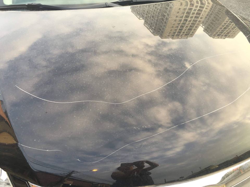 Xe của chị N. bị vẽ hai vệt quanh xe.