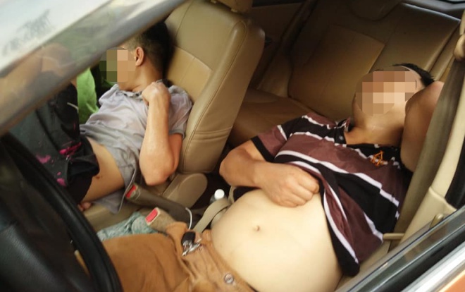 Sau khi xe ô tô này loạng choạng một đoạn dài đã tạt lên vỉa hè đoạn qua nút đèn giao thông Hàm Tử Quan - Trần Quang Khải. Lúc này, hai người trên ô tô đã hạ hết kính, ngả ghế và nằm lăn ra ngủ.