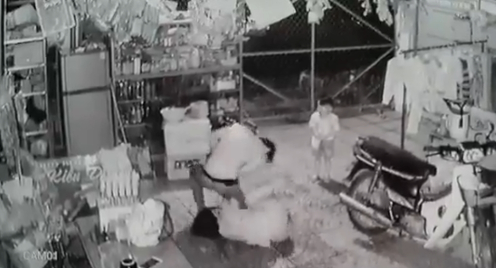 Chưa dừng lại, cho đến khi người vợ chạy thoát được lên bờ thì gã đàn ông cũng lên và tiếp tục chửi bới, mắng mỏ vợ. Lúc này, anh ta lại đưa tay tát thẳng vào mặt vợ, dùng cùi chỏ đánh vào gáy vợ. Điều đáng nói, chuyện bạo hành lại xảy ra trước sự chứng kiến của đứa con nhỏ. Chứng kiến sự việc, cậu con trai chỉ biết đứng cạnh, không dám lại gần và liên tục gào khóc vì sợ hãi.