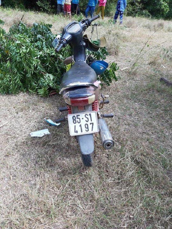 Tại hiện trường, ngoài chiếc xe máy mang biển kiểm soát 85S1-4197 còn có một giỏ quần áo và đồ dùng cá nhân.