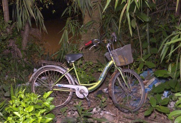 Cú va chạm khiến xe đạp rơi xuống sông, lúc này em T. cố với tay giữ xe lại thì cả người và xe cùng rơi xuống sông mất tích.