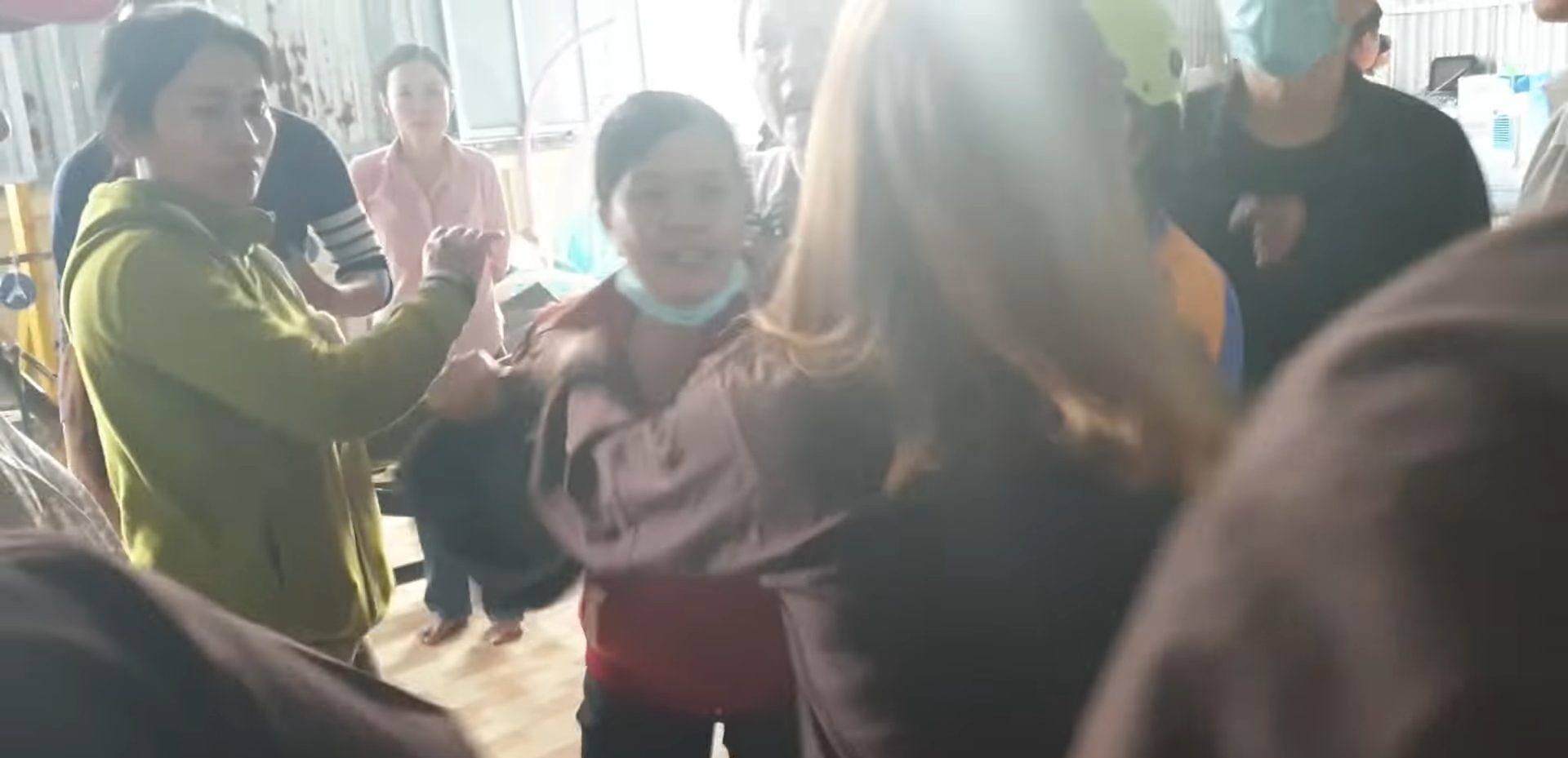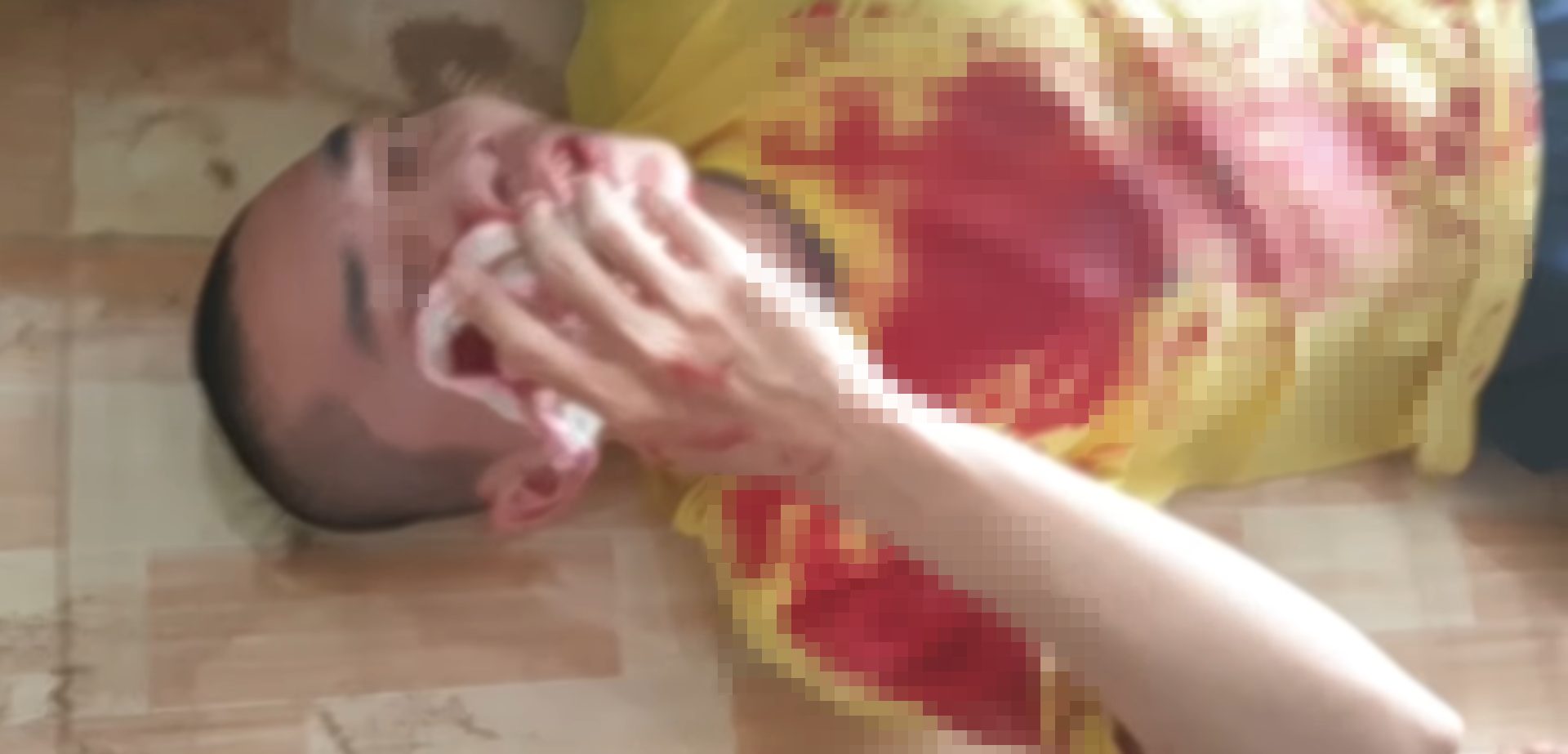 Trong lúc can ngăn, một sư thầy bất ngờ bị một người phụ nữ cầm tấm gạch men sắc nhọn đánh vào mặt kiến bị thương nghiêm trọng.