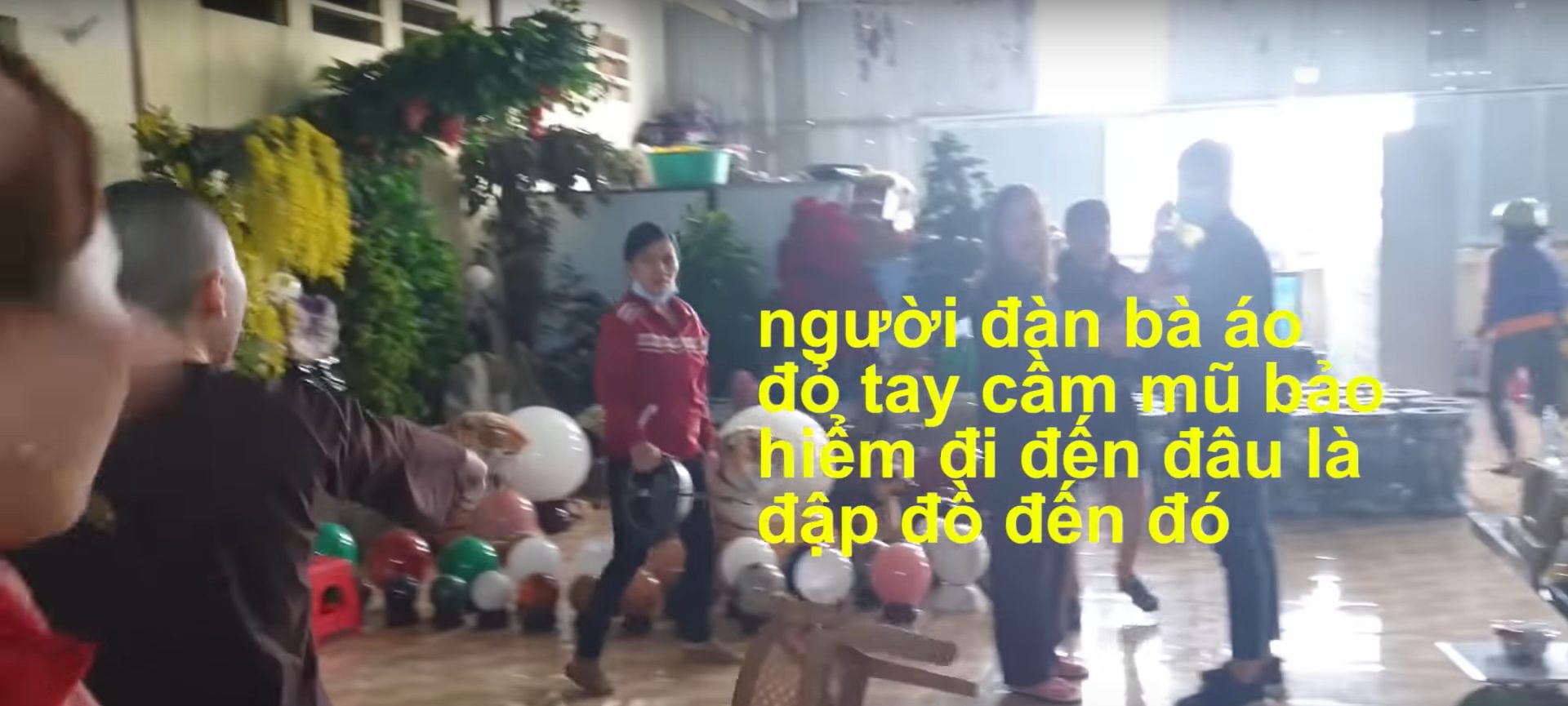 Nhóm người xông vào tịnh thất Bồng Lai đập phá. Ảnh cắt từ clip