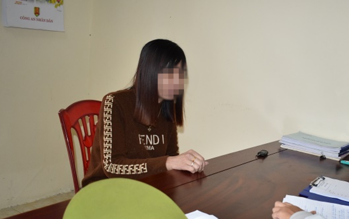 Người phụ nữ tung tin sai sự thật tại cơ quan công an. Ảnh Công an tỉnh Ninh Bình