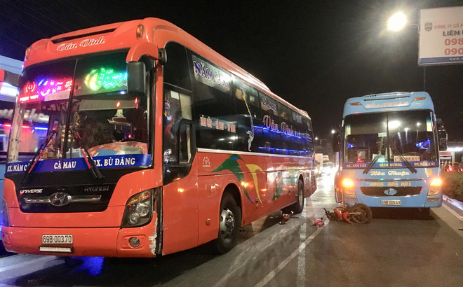 Tại hiện trường, xe máy của nạn nhân nằm lọt dưới gầm xe khách. Xe máy nằm trong làn đường giành cho ô tô. Vụ tai nạn khiến giao thông qua khu vực hỗn loạn, kẹt cứng kéo dài.