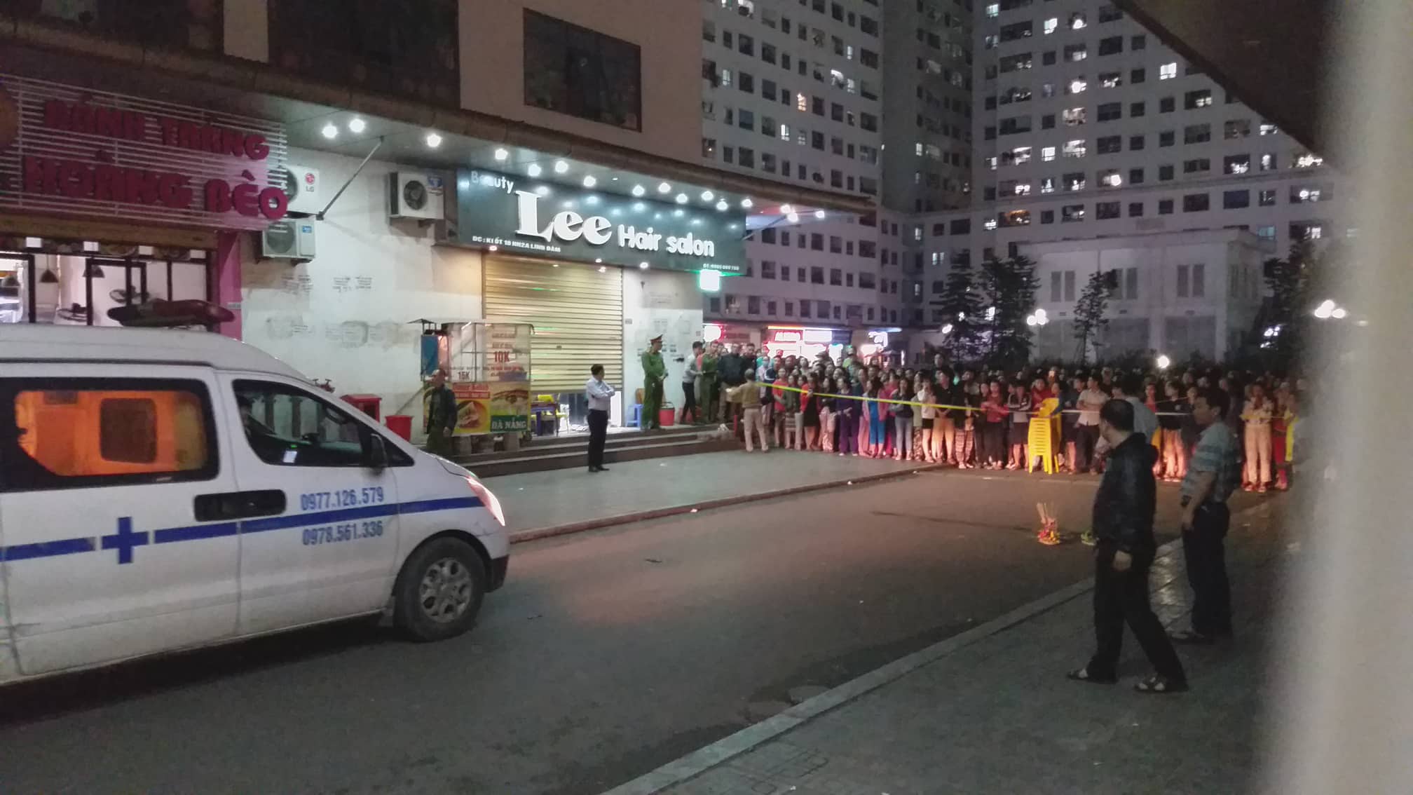 Tại hiện trường, rất đông người dân hiếu kì đứng theo dõi vụ việc khiến sân chung cư chật kín người. Các quán quanh khu vực cũng đã được lực lượng chức năng yêu cầu đóng cửa để phục vụ công tác điều tra.