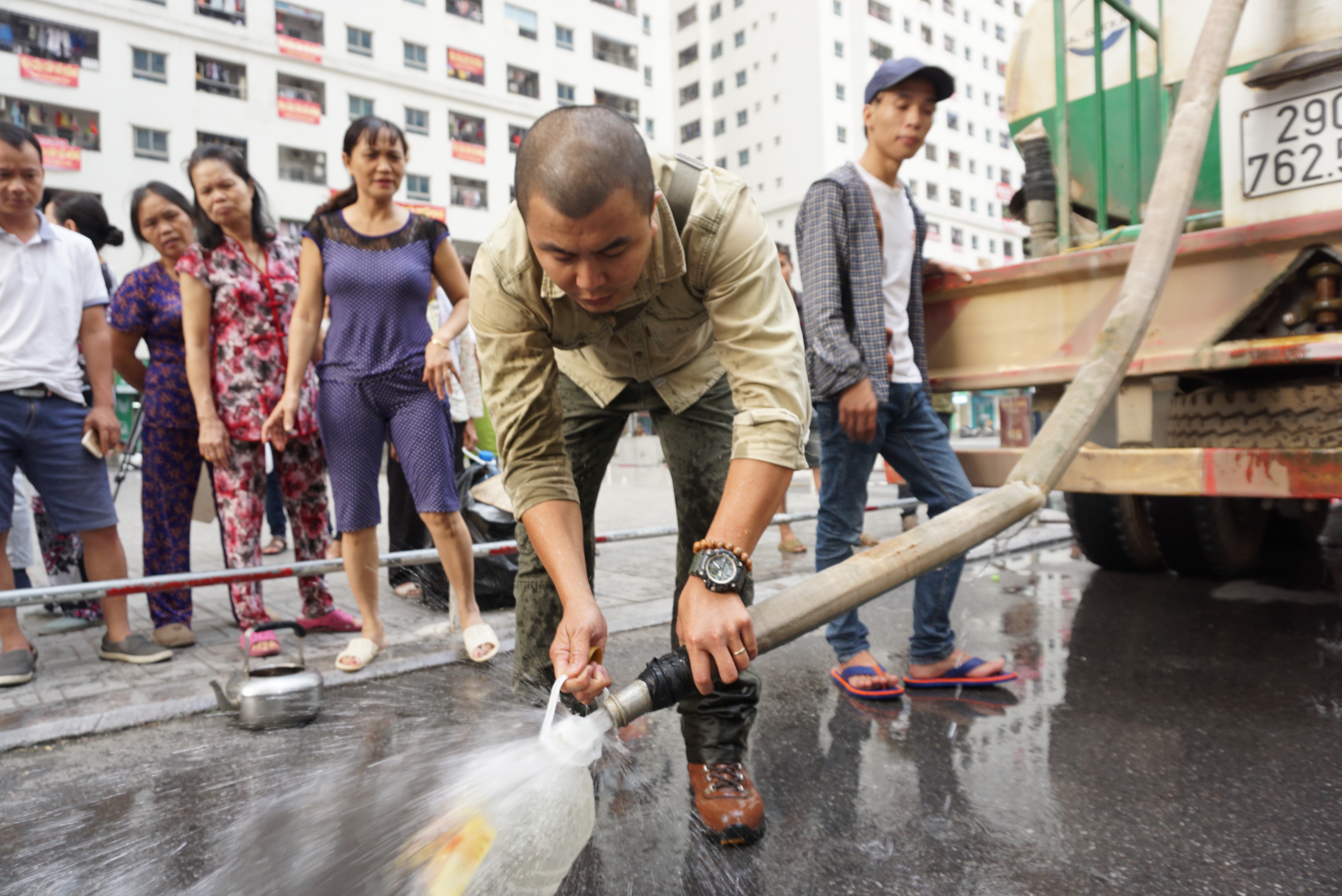 Cảnh người dân khổ sở nửa đêm chờ lấy nước.