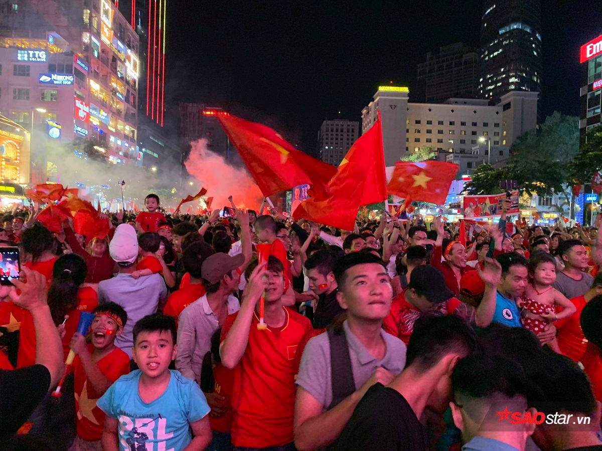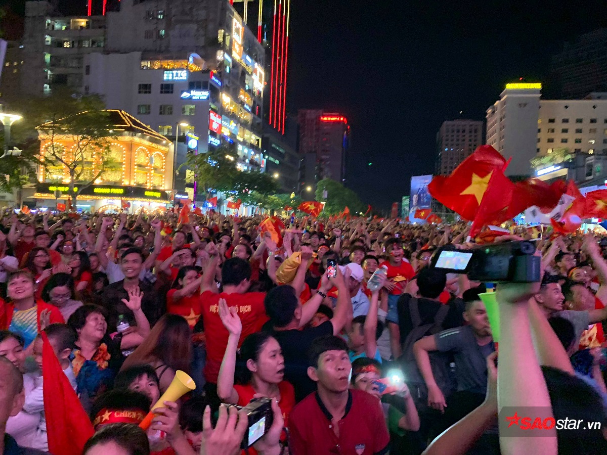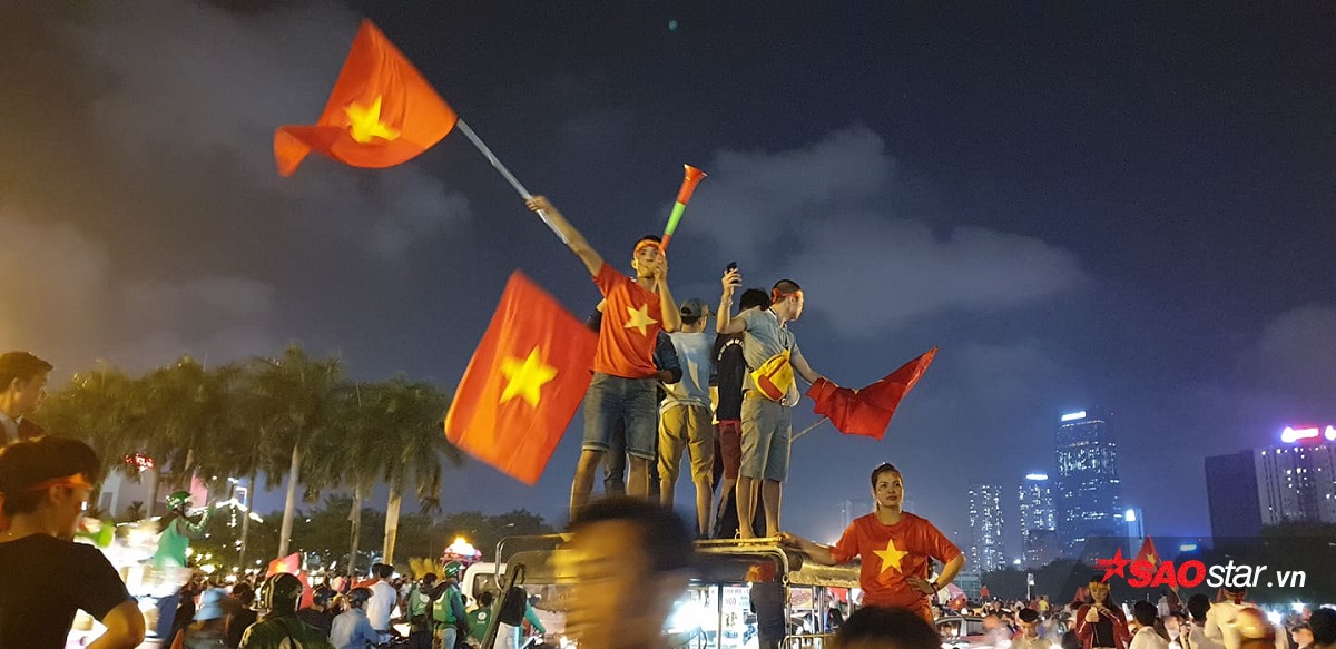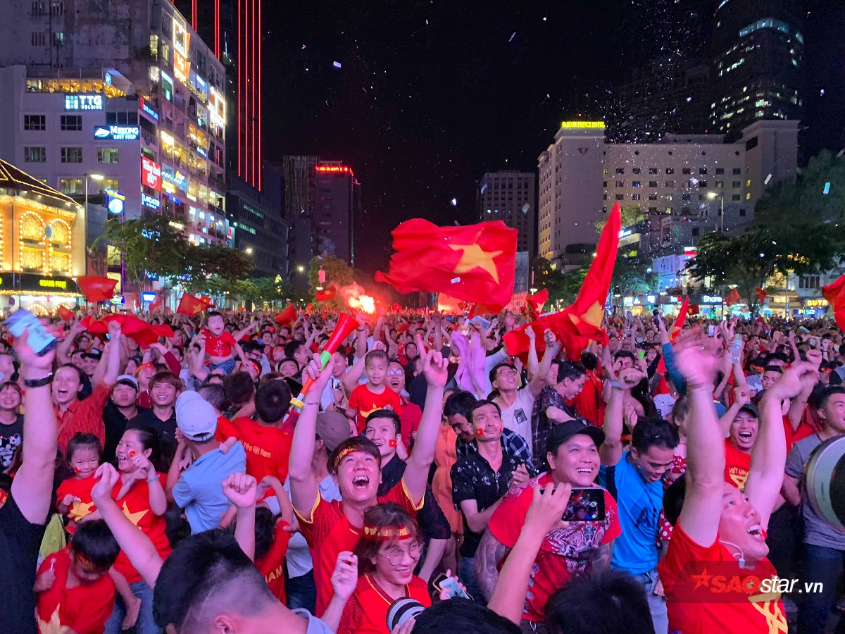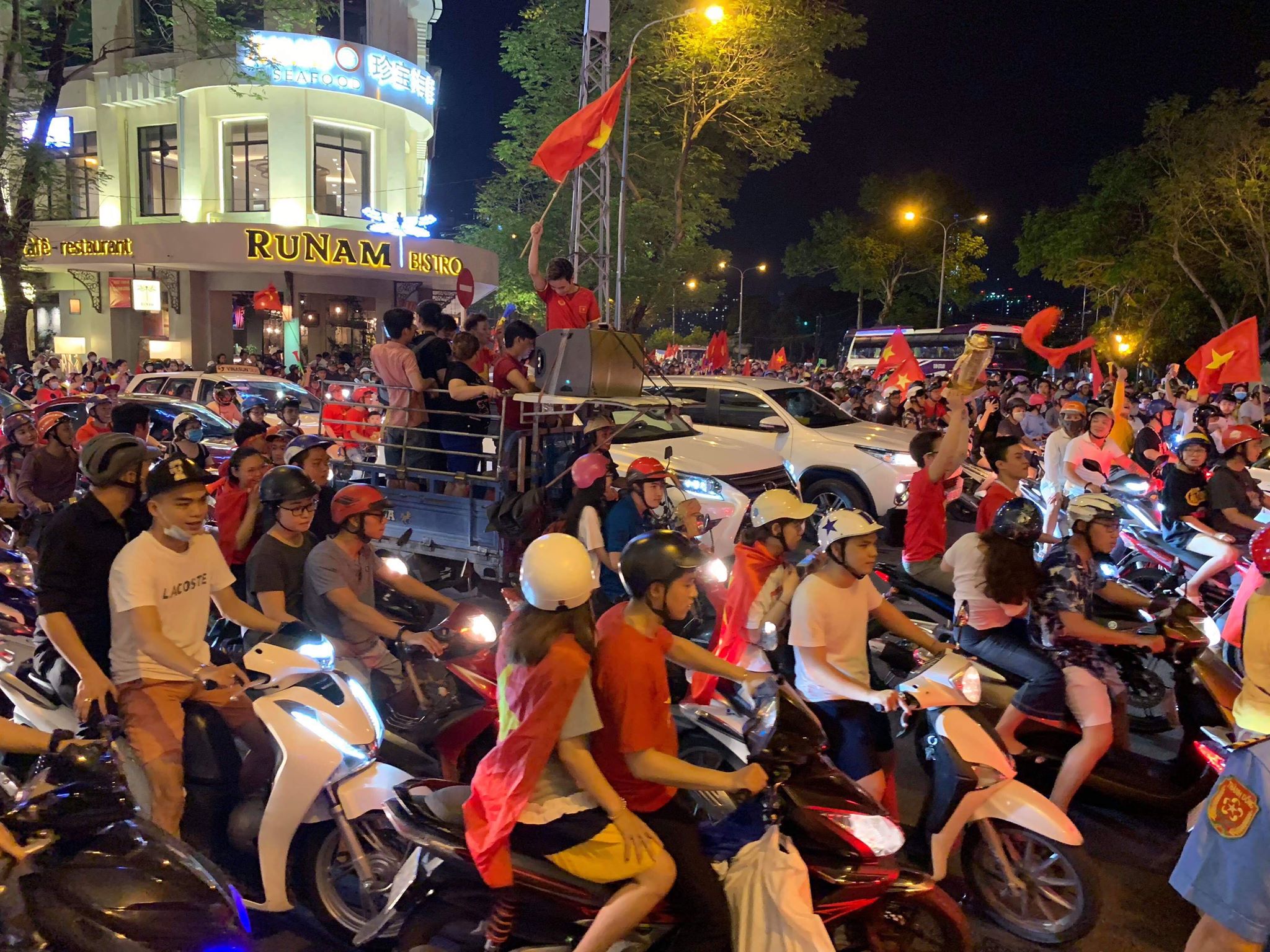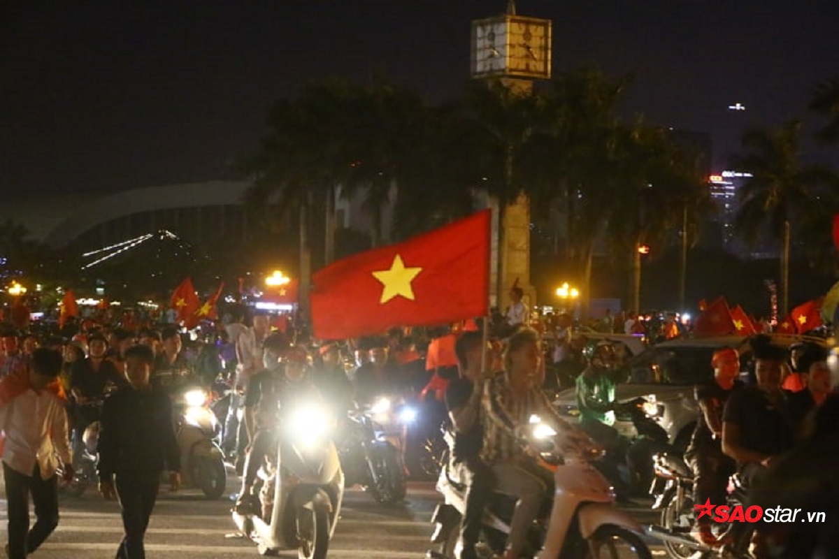 Ngay trong đêm, người hâm mộ từ phố đi bộ NGuyễn Huệ ùn ùn đổ về các tuyến đường để ăn mừng.