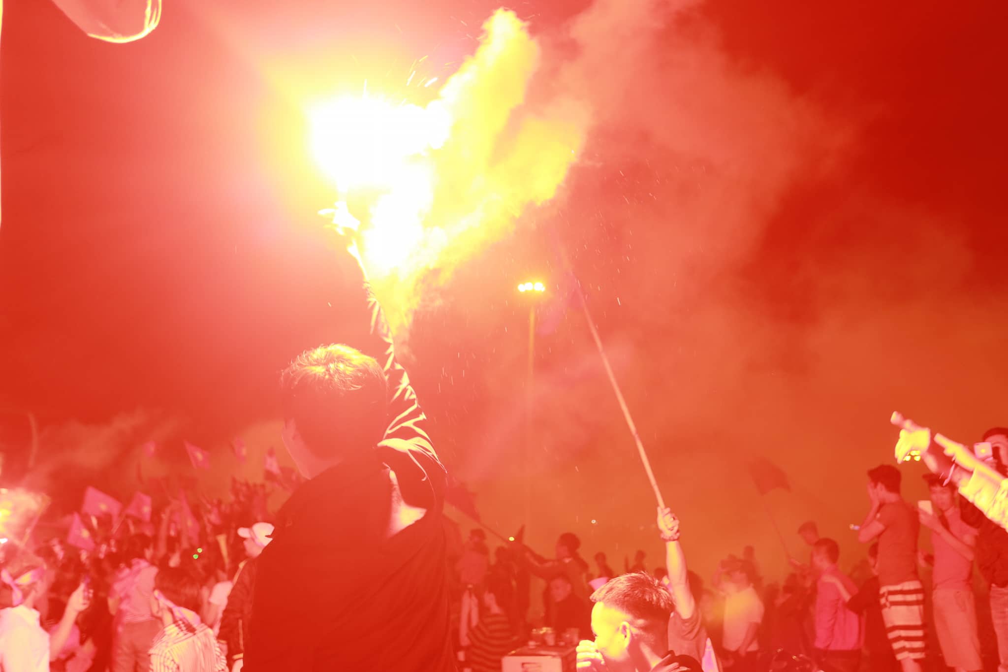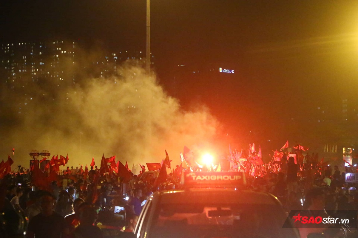Ngay khi tiếng còi kết thúc, pháo sáng của đã rực rỡ 1 góc trời.