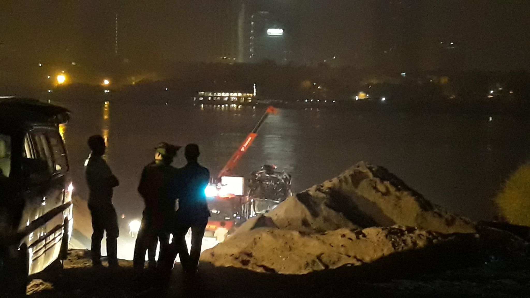 Nhận được tin báo, lực lượng chức năng thành phố Hà Nội như Cảnh sát Phòng cháy chữa cháy; Cảnh sát giao thông; Công an quận Long Biên, Chi cục đường thủy nội địa phía bắc… nhanh chóng tổ chức công tác cứu hộ.