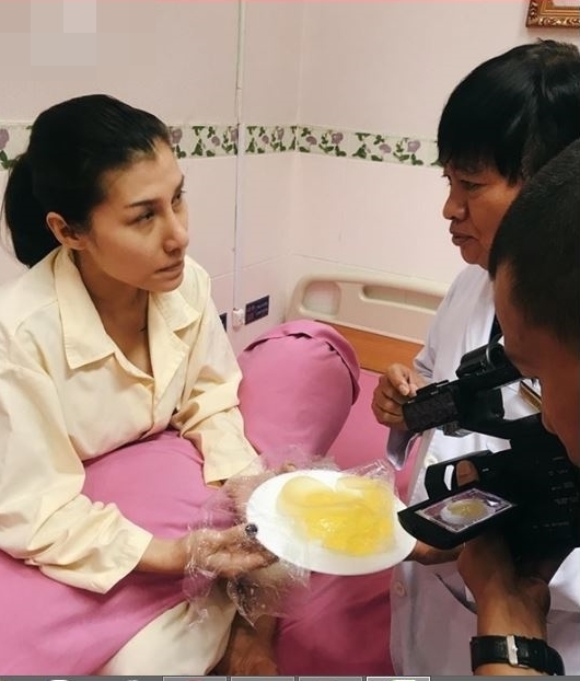 Lúc này chị nghĩ chắc do áp suất máy bay khiến ngực sưng lên, chắc không sao nên sau đó đi ngủ. Tuy nhiên sáng hôm sau, ngực phải bất ngờ lại sưng to hơn nữa, vì lo lắng và khá hoang mang nên chị vội vào Bệnh viện phụ sản Quốc tế Phụ nữ (quận 1, TP.HCM) kiểm tra, kết quả siêu âm cho thấy bờ túi không đồng đều và dịch nhờn chảy xung quanh ngực nhưng không rõ dịch gì.