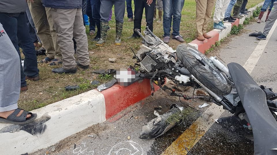 Tại hiện trường xe máy bị hư hỏng rất nặng, vỡ vụn nhiều thiết bị. Hiện vụ việc vẫn đang tiếp tục được công an điều tra làm rõ.